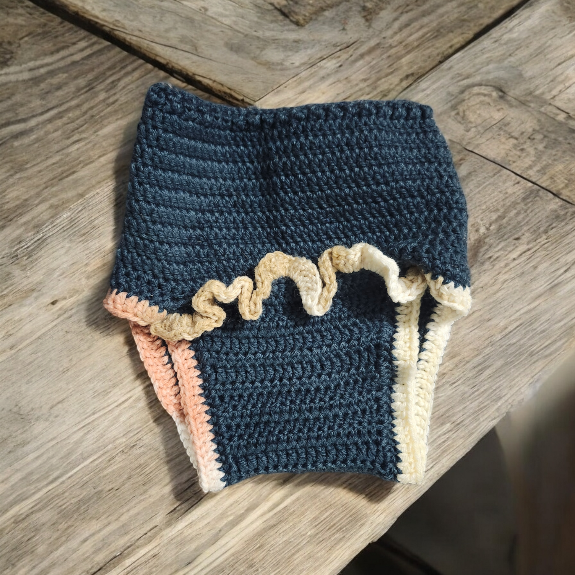 Made with super duper soft baby yarn. The cutest little top and diapers cover.