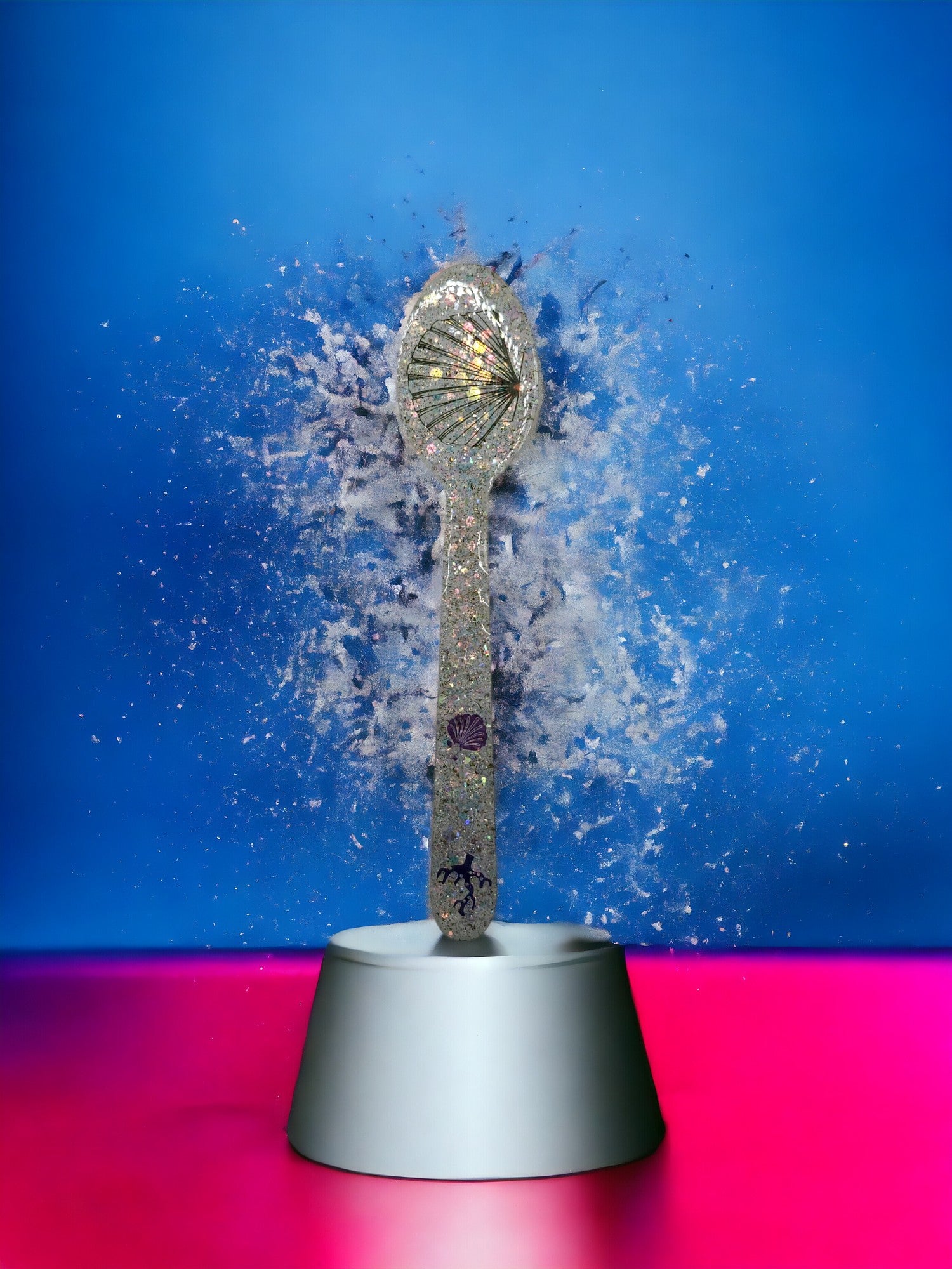 Watching babies with these Sushers, they walk to move and crawl to dang and touch the Susher on different things. This Susher is made with confetti pieces inside for extra decor. Made with food safe resin. 5.5 Inches tall. Matte on one side and glossy on the back.