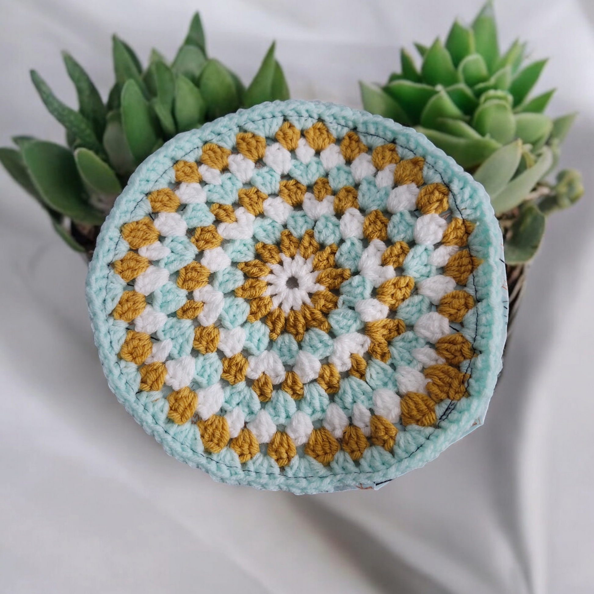 This double sided burl cloth is sewn with my machine. BUT it is still hand crocheted with love.