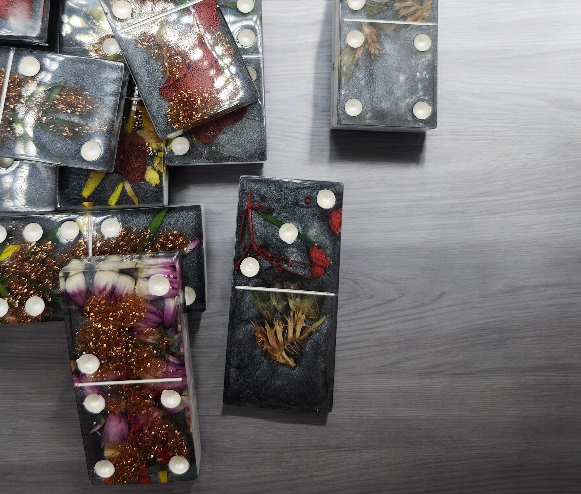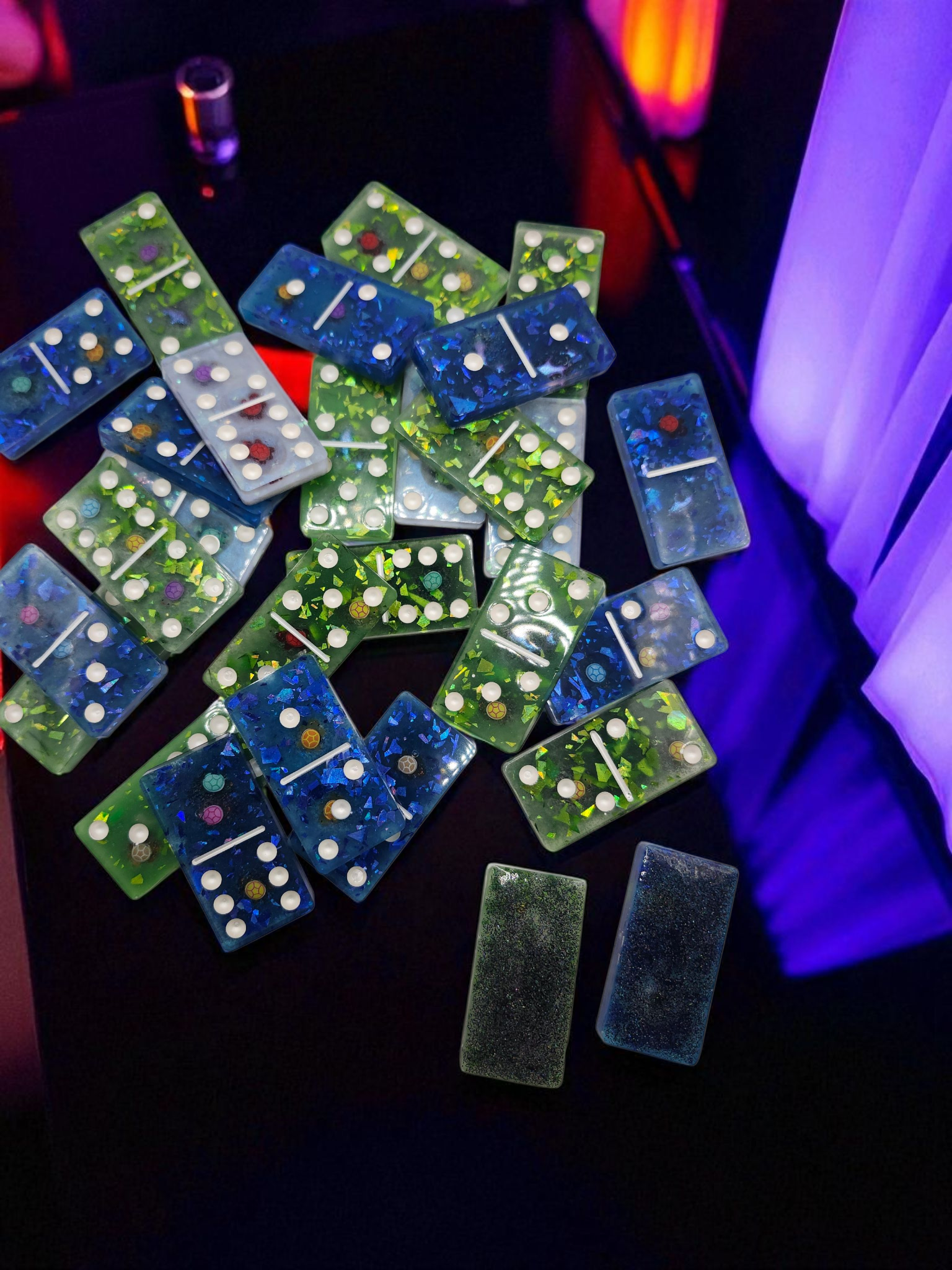 Handmade. Set of 28. With Pearl glitter as the inside dots. Made with Food grade resin for littles who like to chew everything they see.