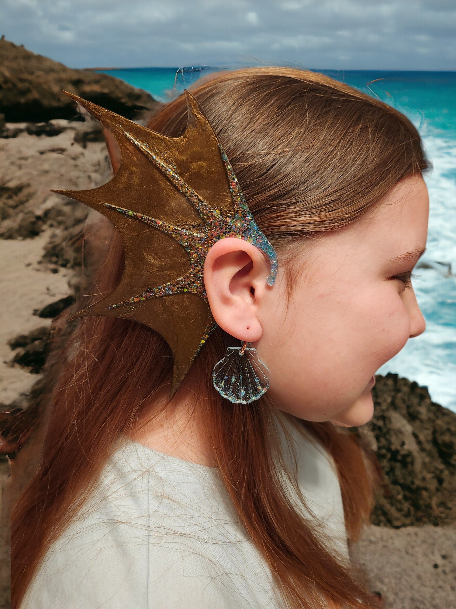 These are so cute for little ones! Opens a world of imagination. This version has a dangle shell looking like an earring. This version is too big and heavy for a small toddler.