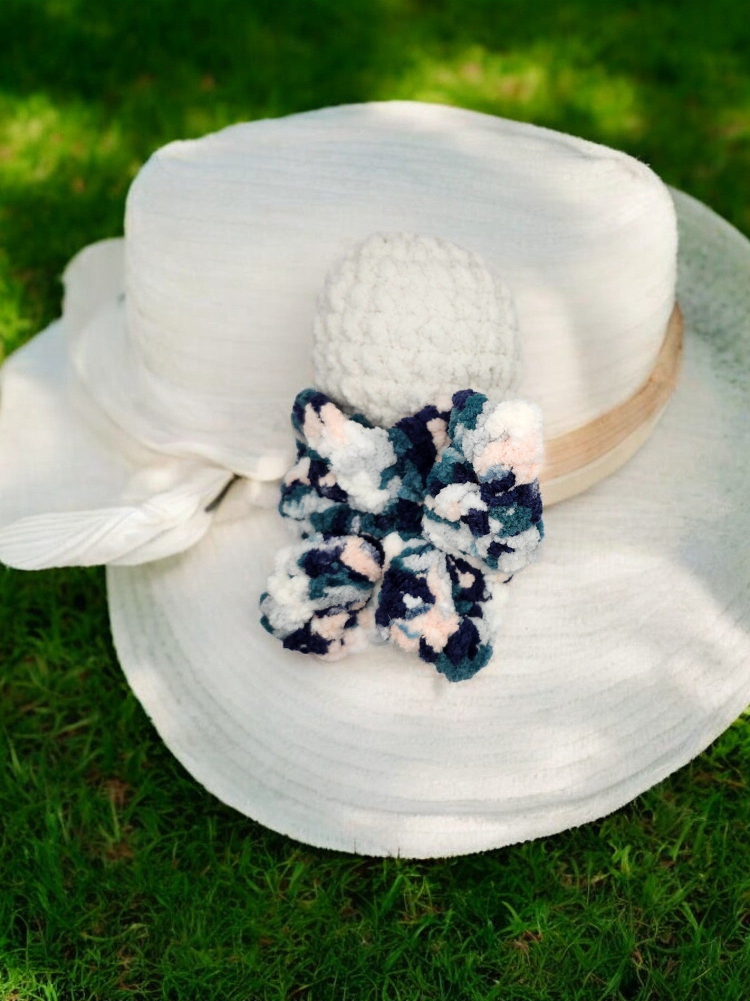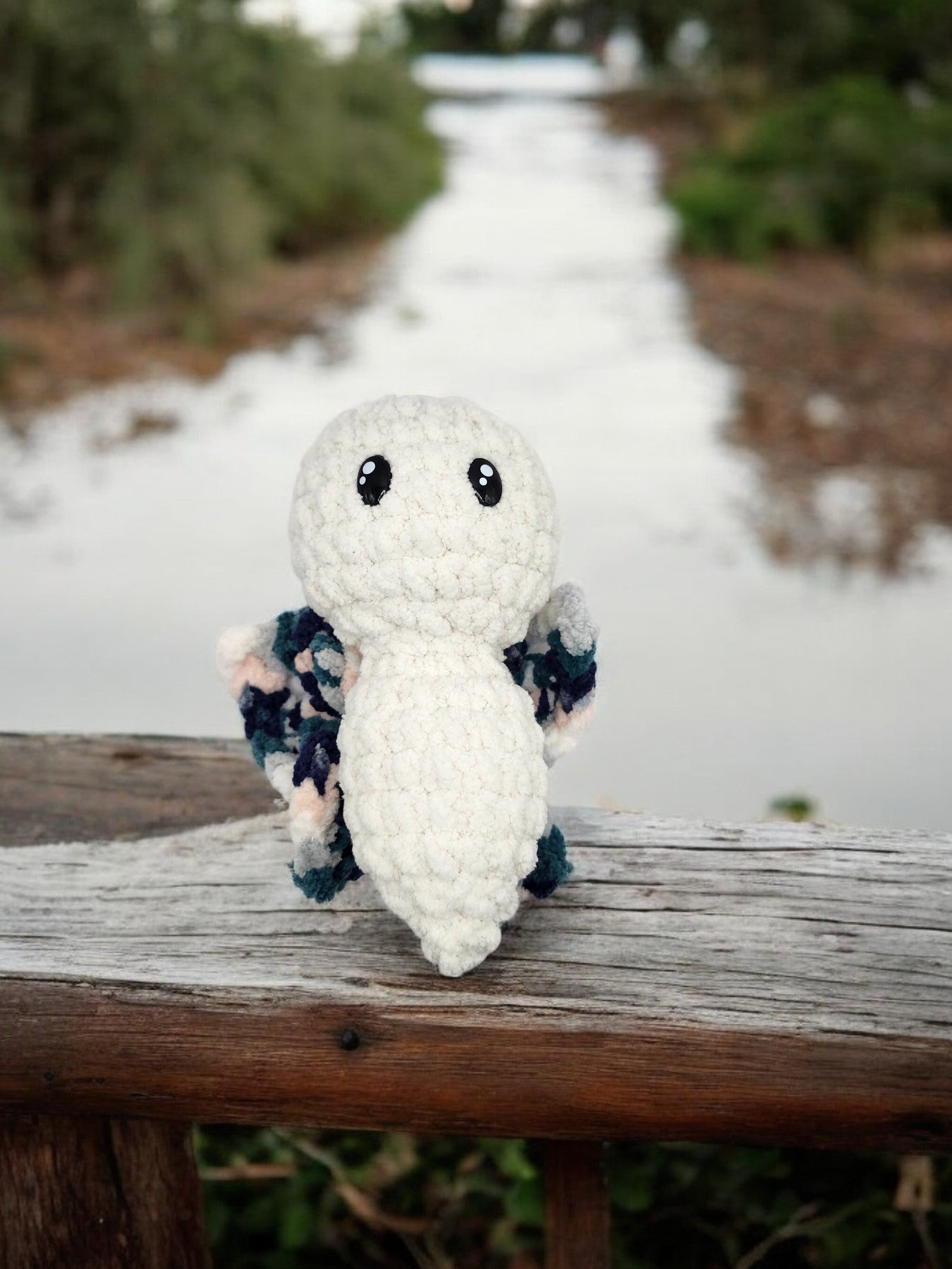 Made with soft chunk yarn and safety eyes. Also has Tiny Grim quiet rattle inside.