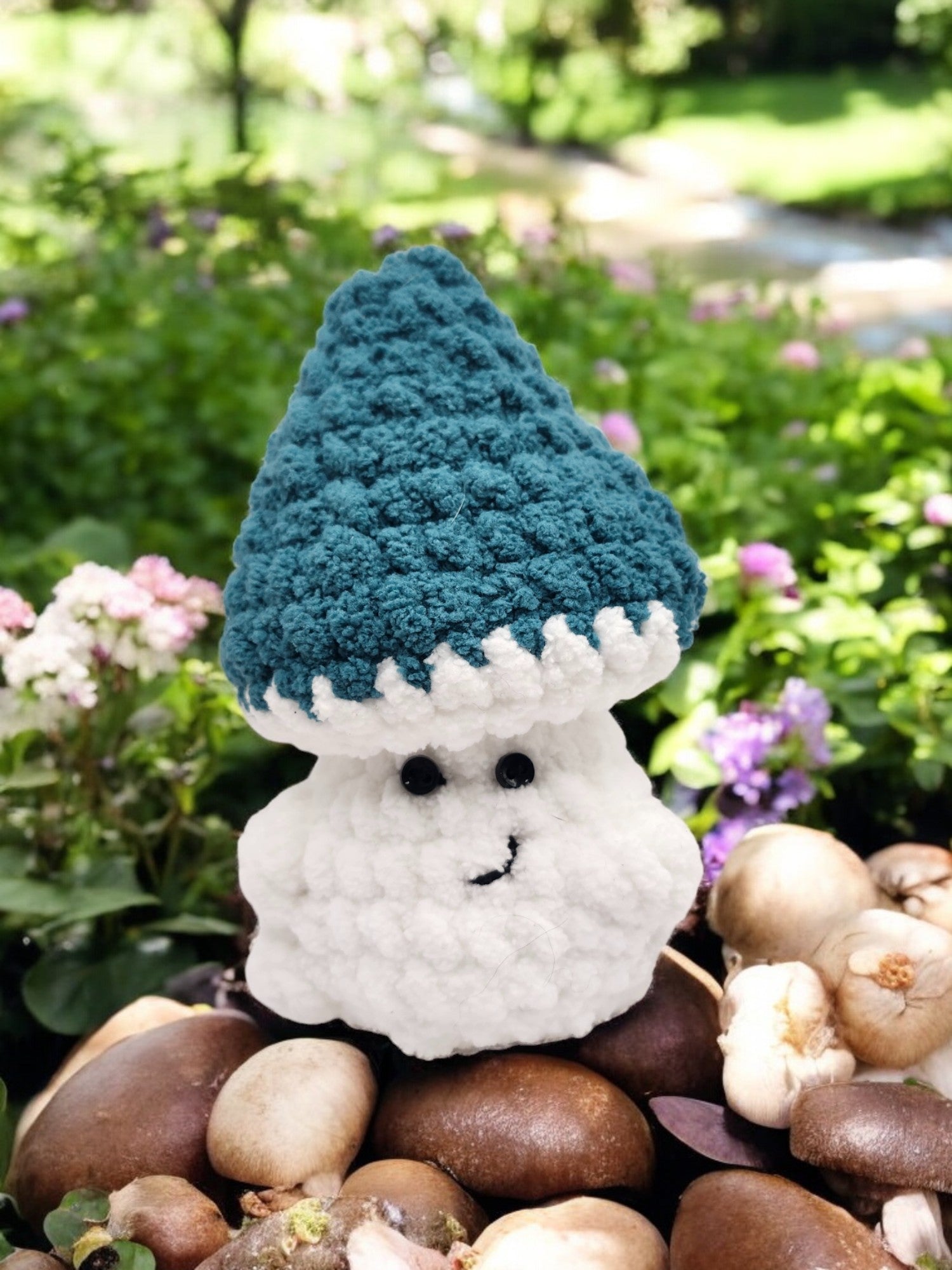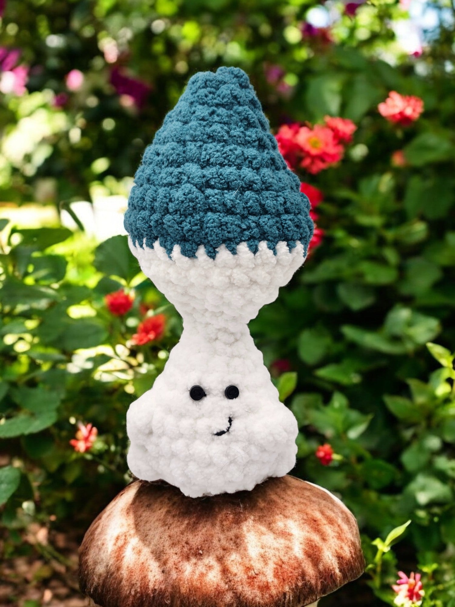 6 inches when down and 8 inches when popped. Made with soft yarn, and tiny button eyes.