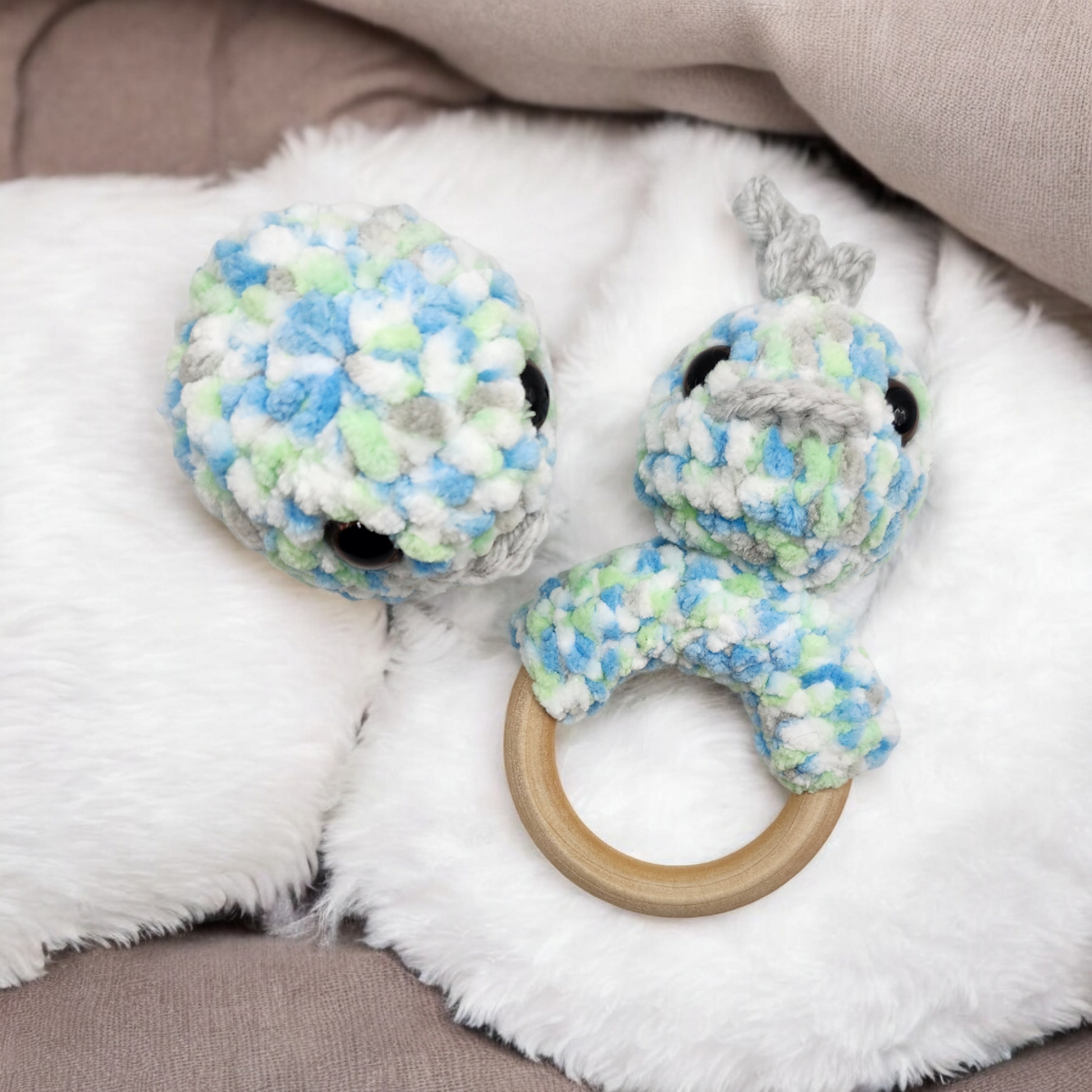Made with super soft baby Chunk yarn and safety eyes. Contains: