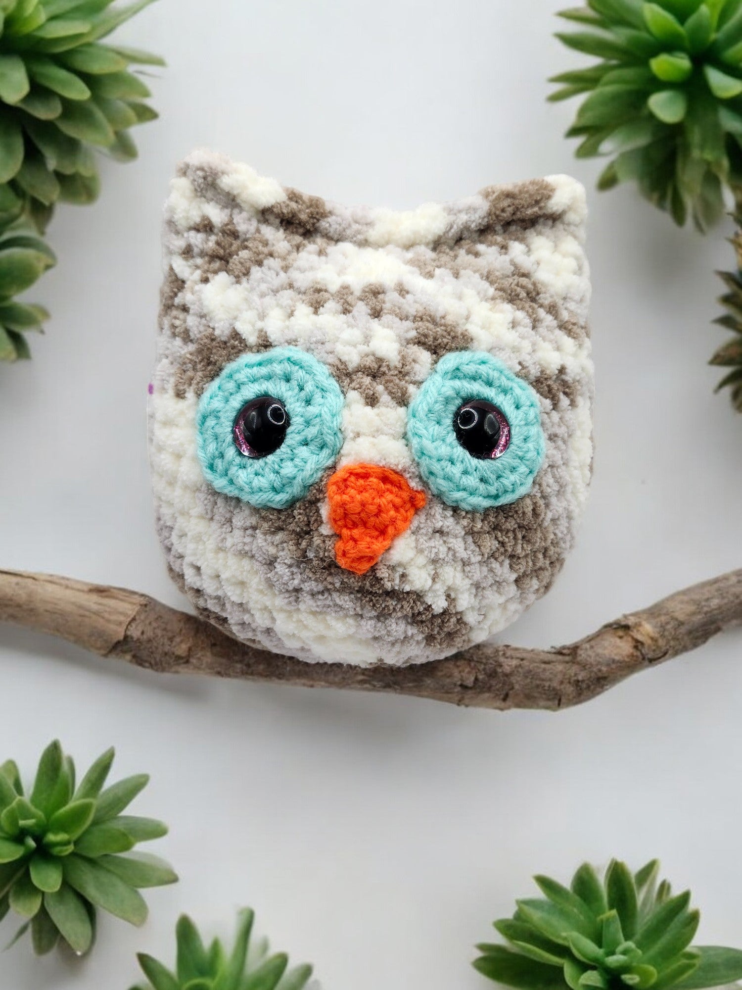 Made with safety eyes and soft chink yarn. 7 inches from top to bottom