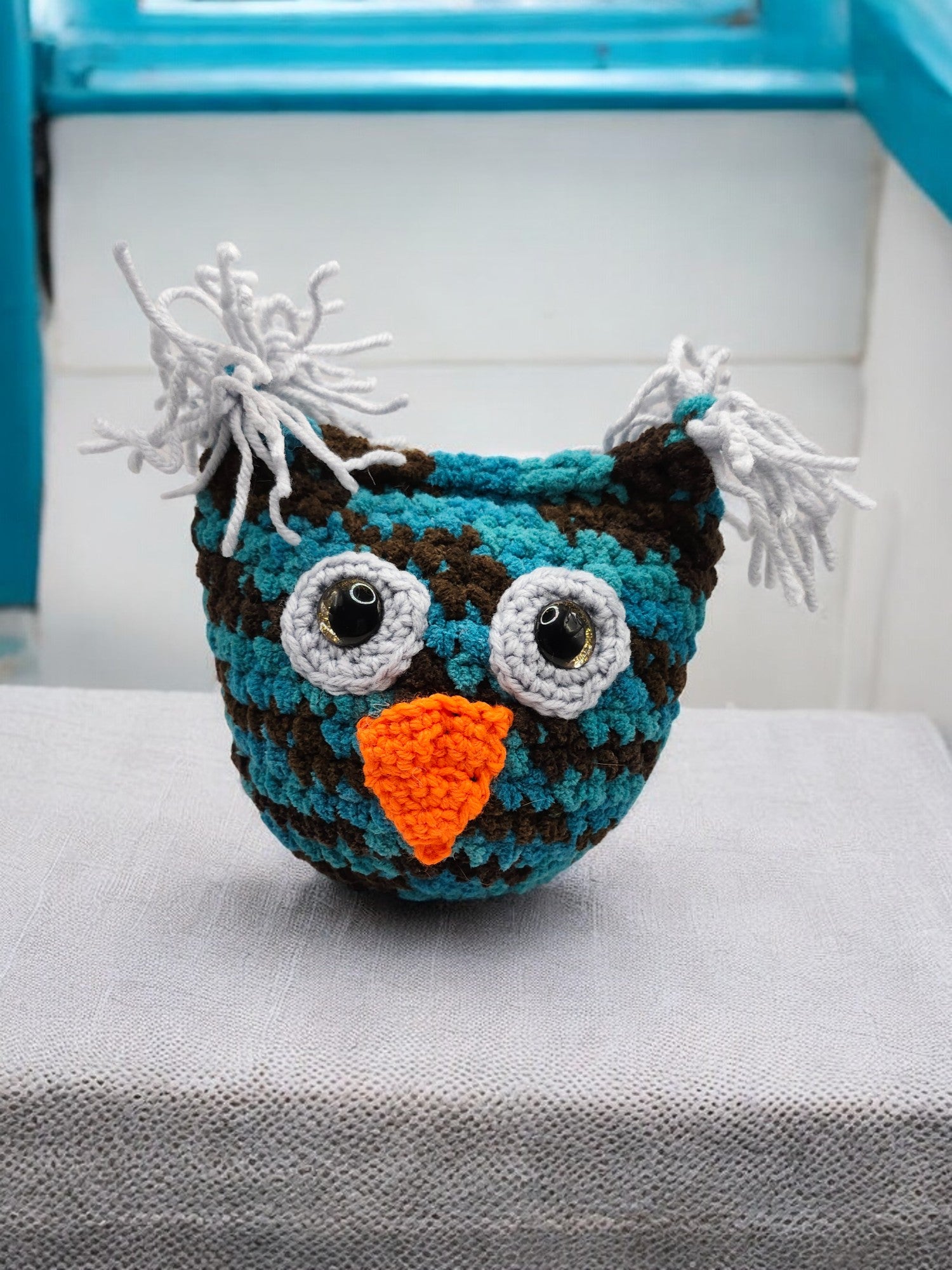Hooty is made with super duper soft yarn and safety eyes. Hooty stands 6 inches tall.