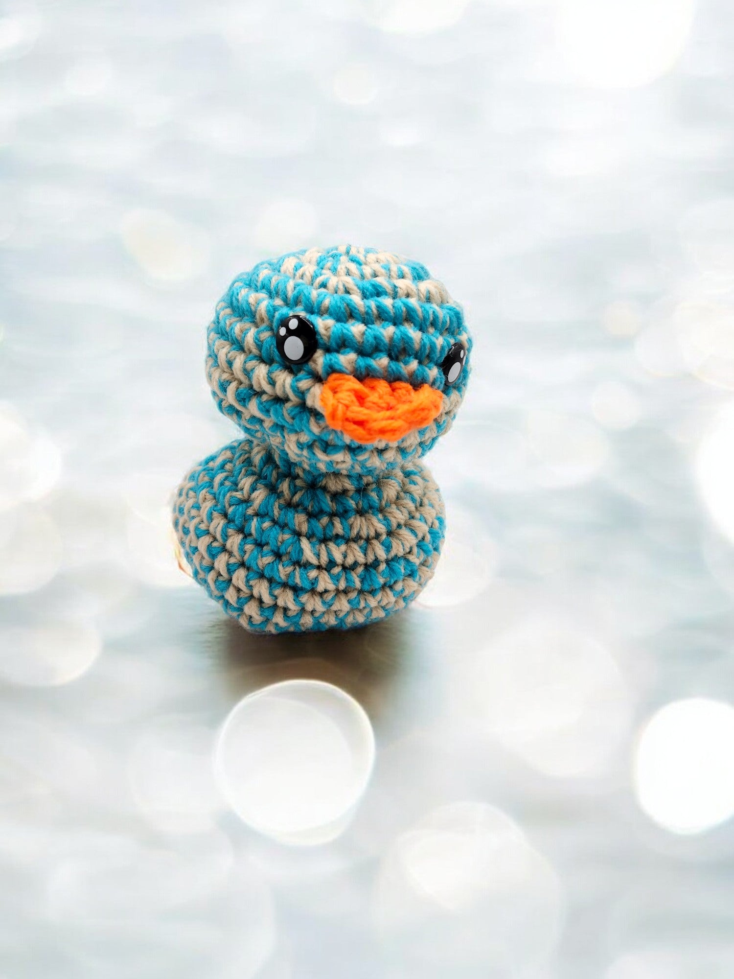 Made with safety eyes and Tiny Grim quiet rattle. 4.5 inches from head to bottom