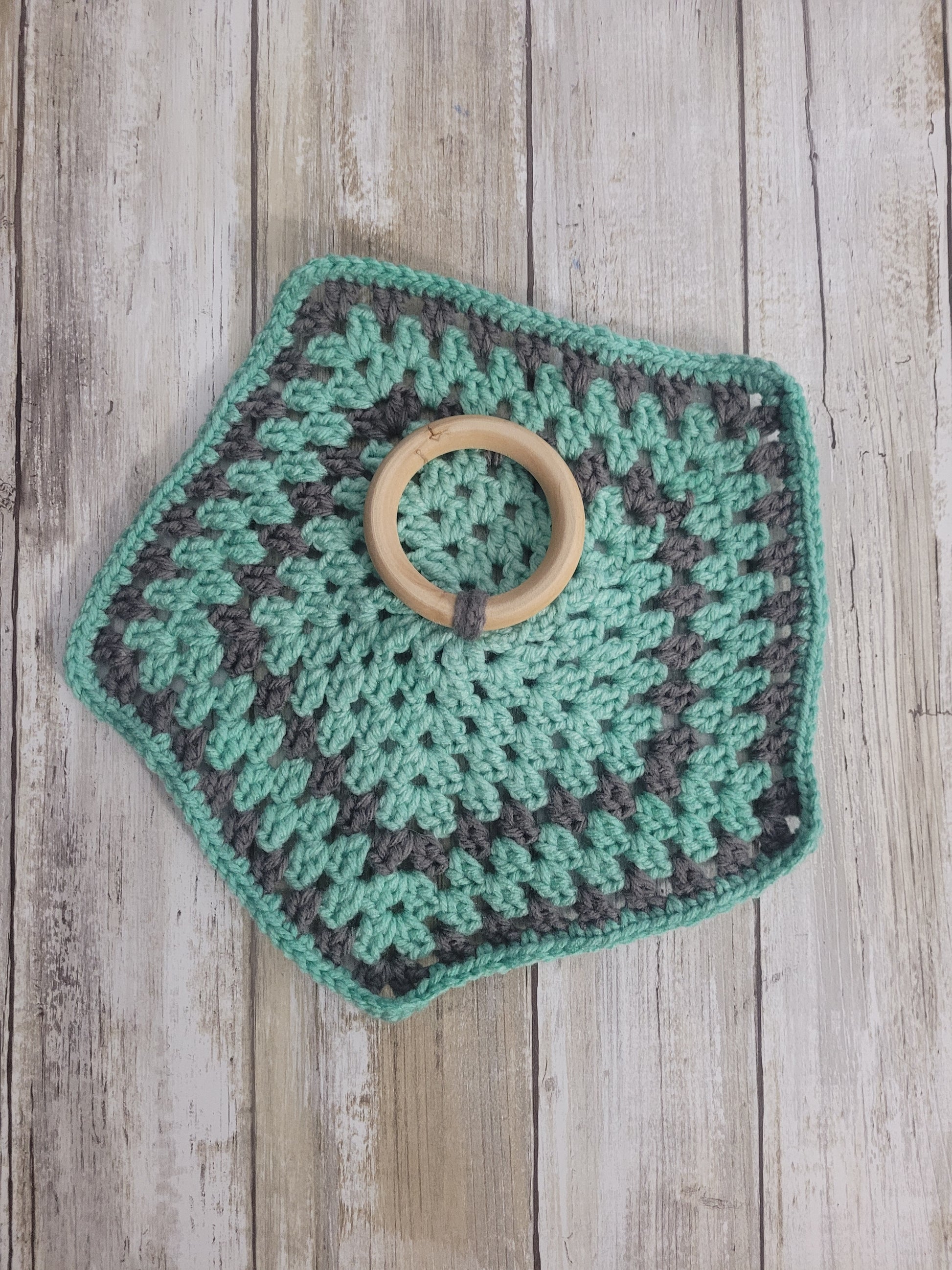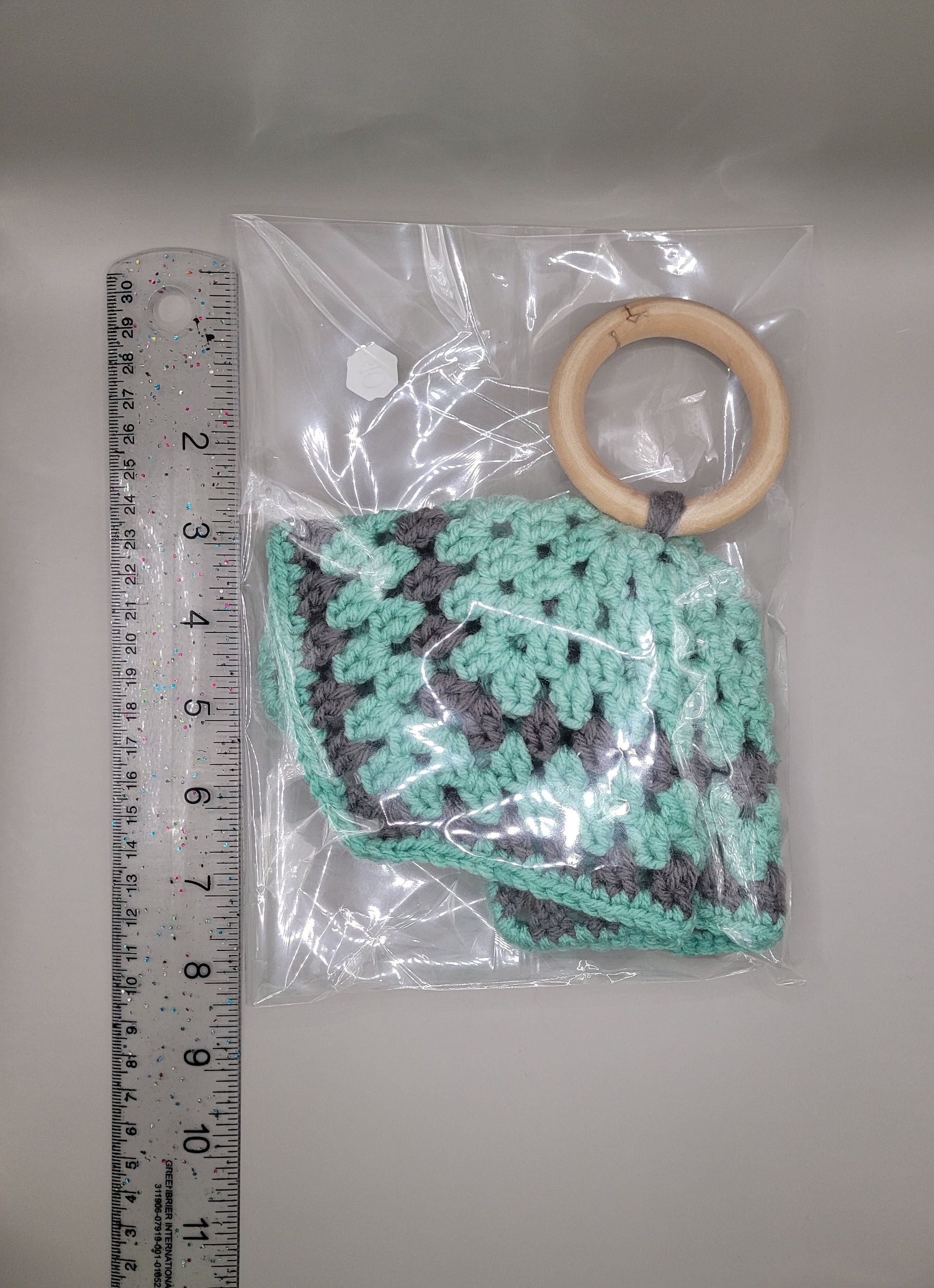 This is such a cute little lovey. Made with all natural beech wood teething ring for play and easy carry for baby. This lovey is just ready and waiting to give love and comfort to a little one.