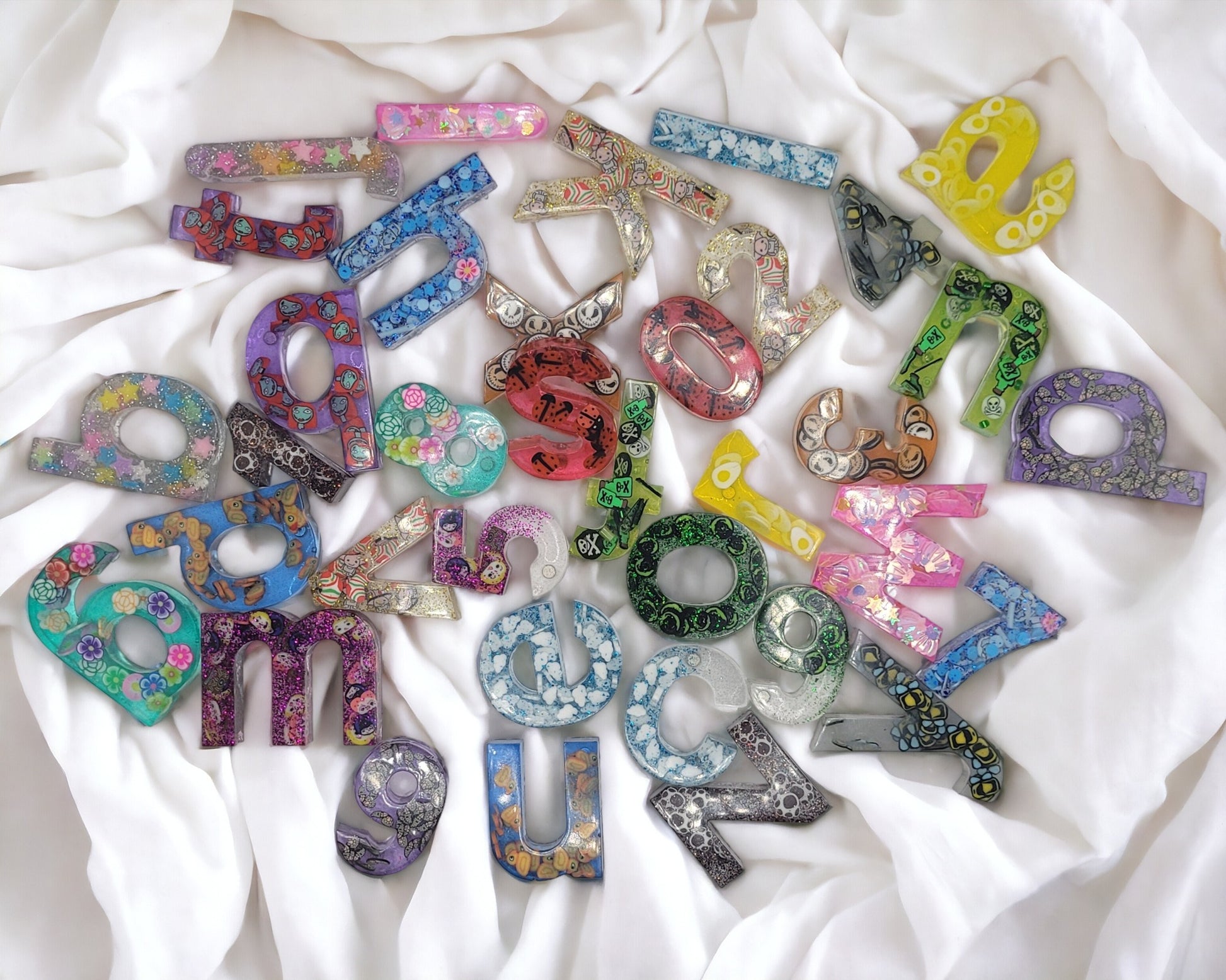 These are a new spin on the traditional "fridge magnets" parents have had for generations. There are a few different options. All are made with the magnets into the number/letter. Made with food safe resin. The multi packs are random designs.