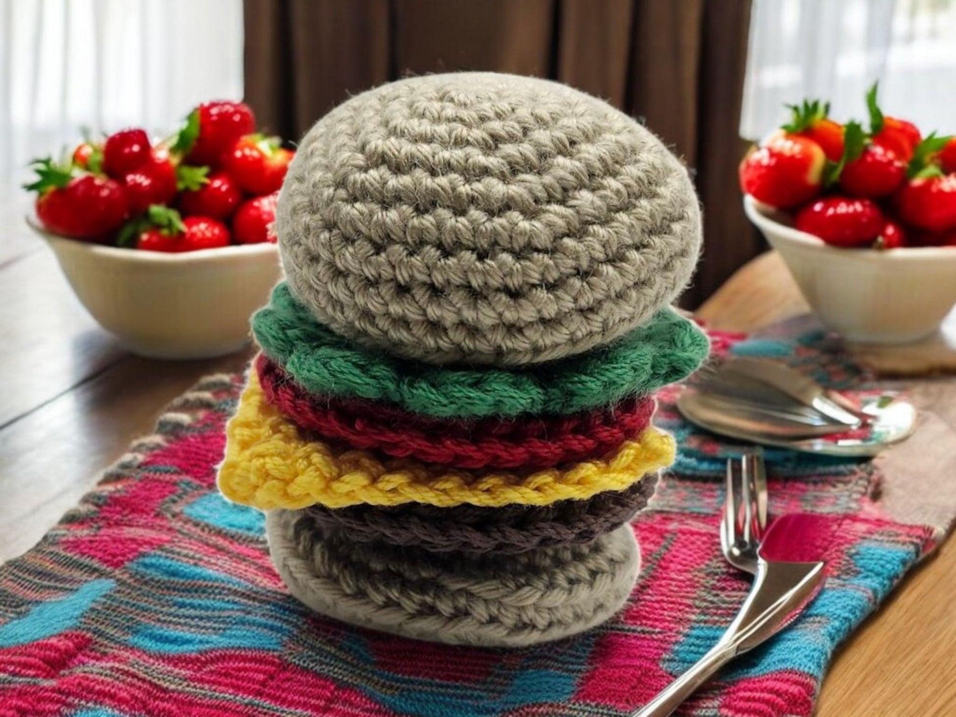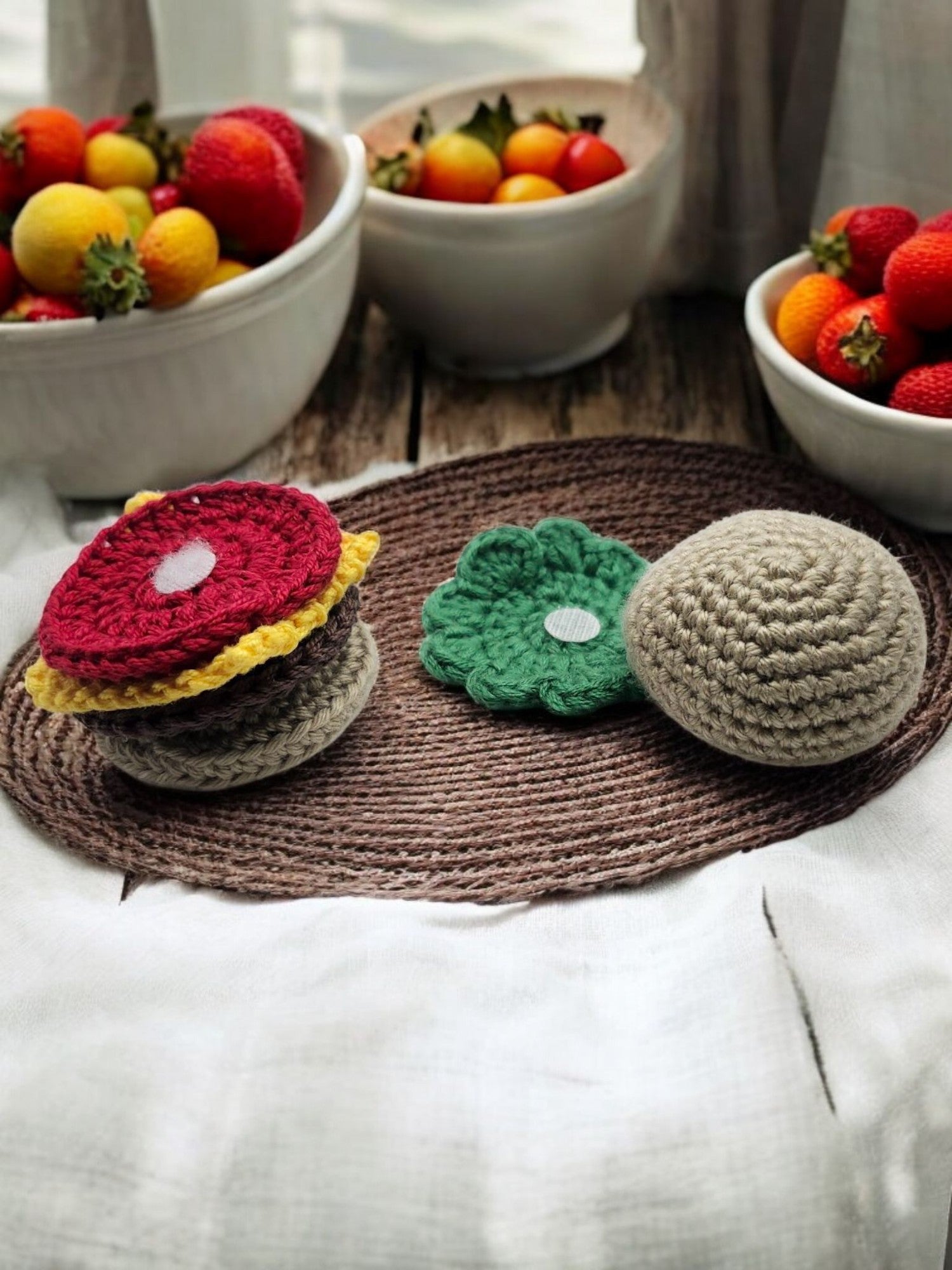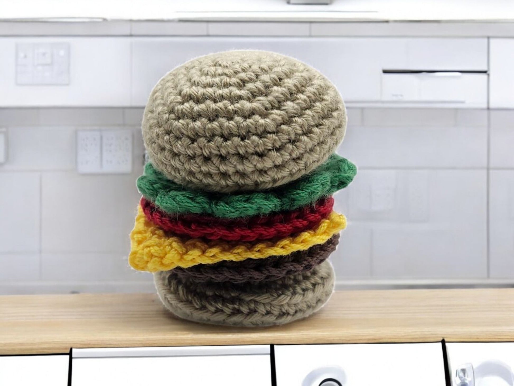 These mini hamburgers Velcro together for easier stacking.