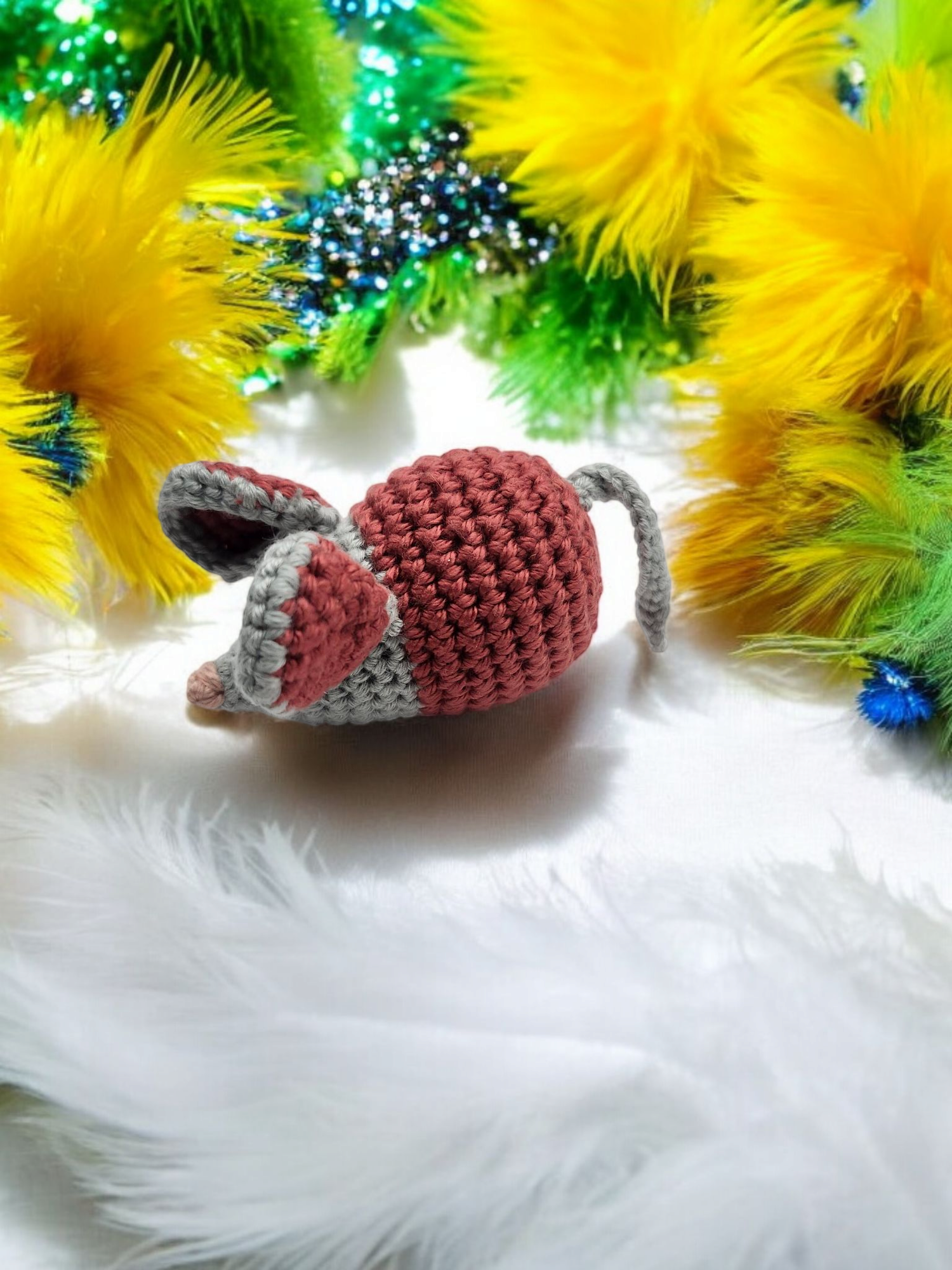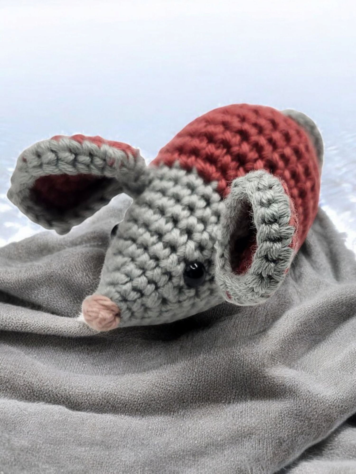 Made with Tiny Grim quiet rattle and safety eyes. 3 inches long, not including tail.
