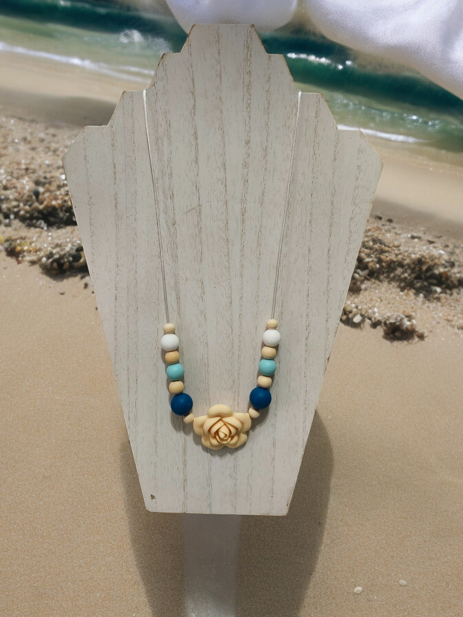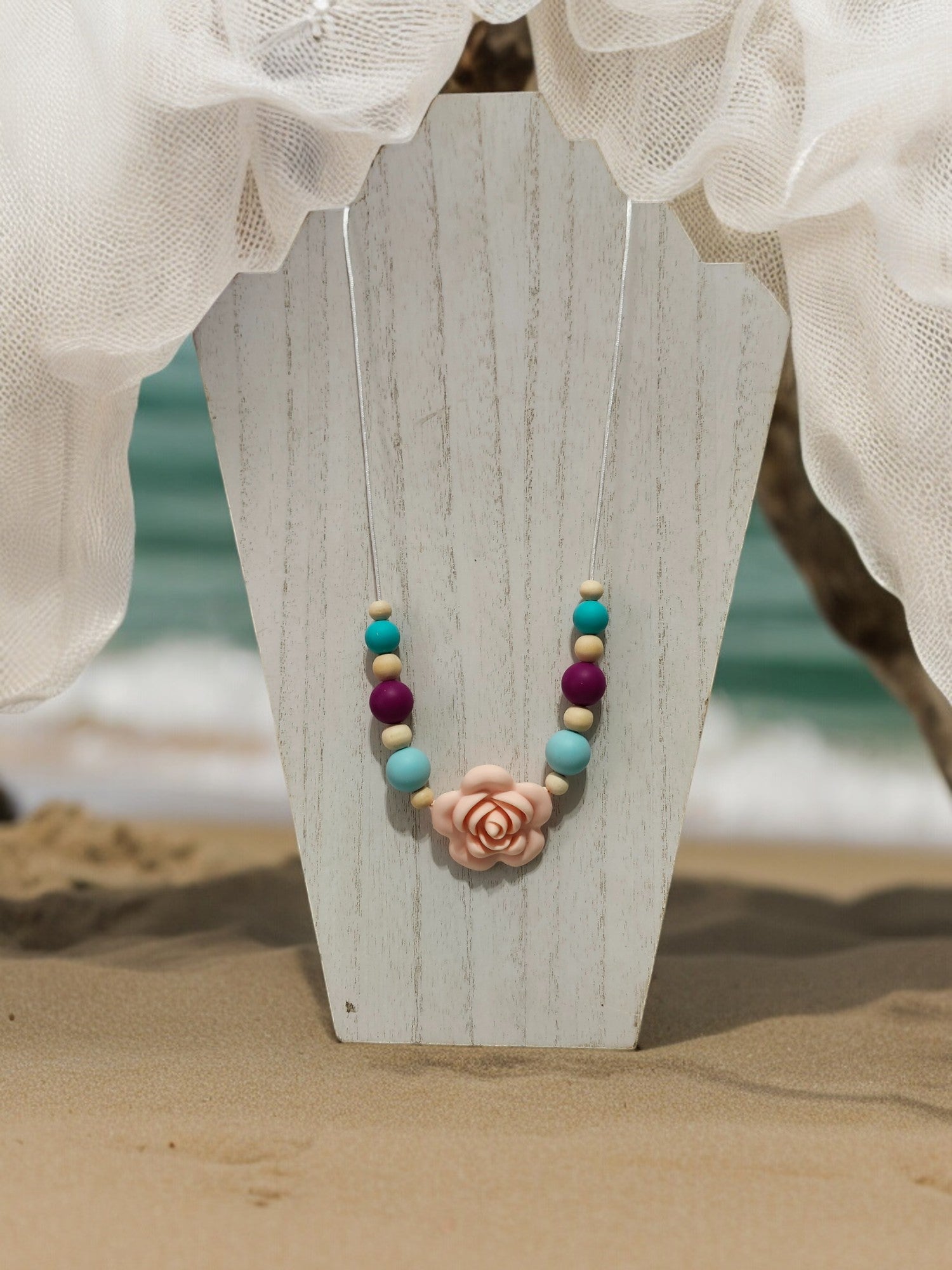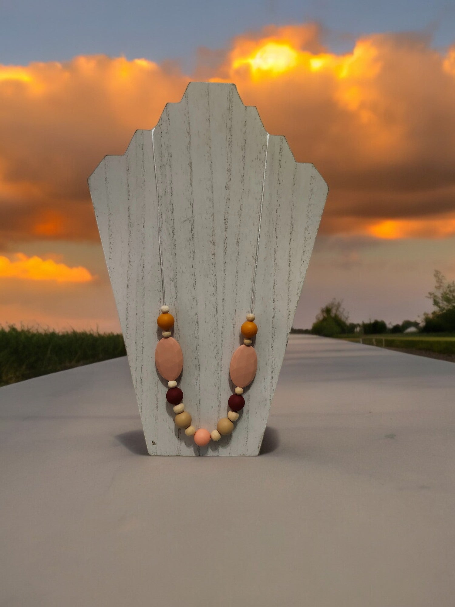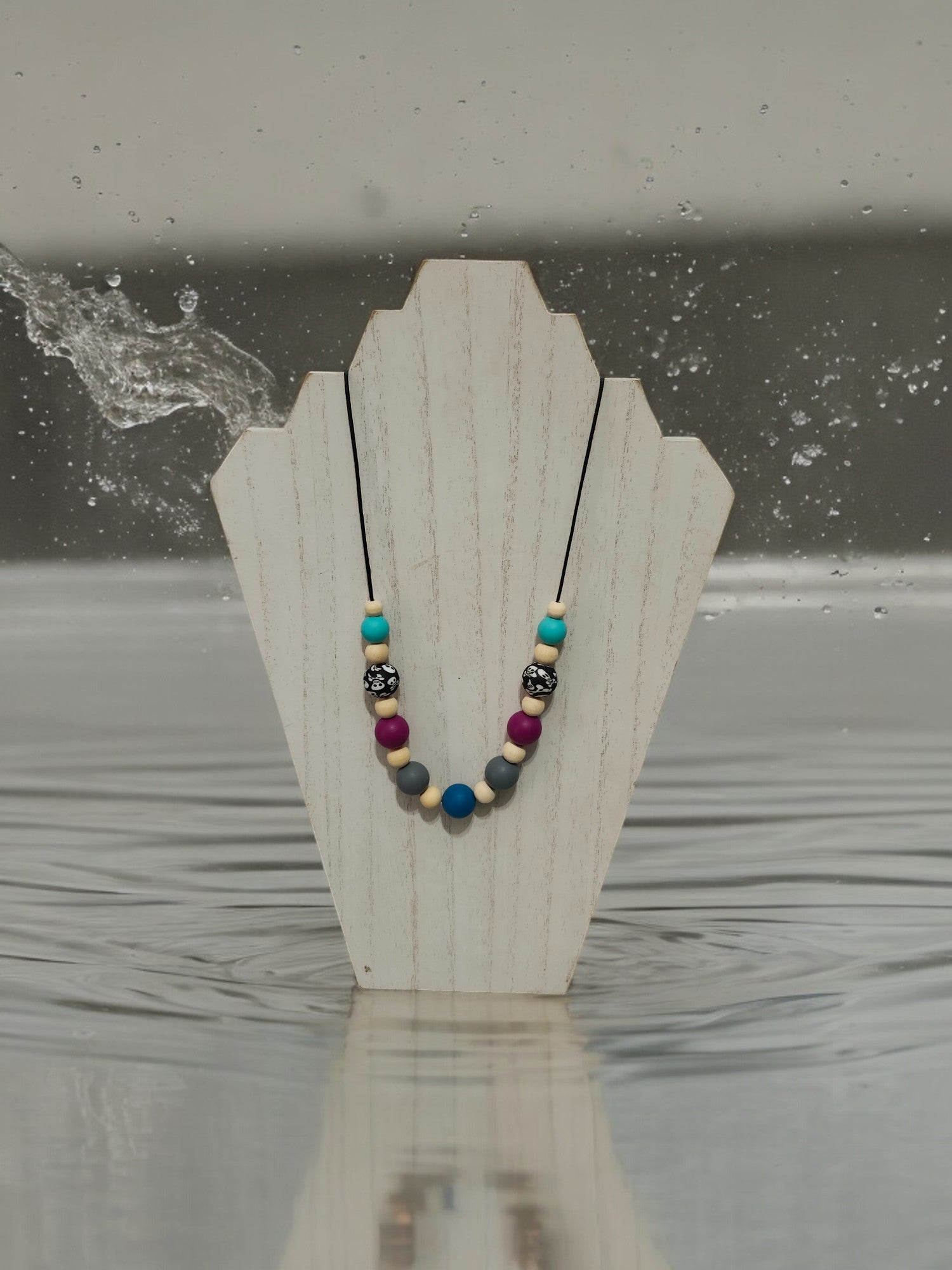 These necklaces are perfect for teething babies. While they are in your arms or your baby sling, they can play with your necklace. Made with extra secure safety clamps on both ends, beechwood beads, and silicone beads.
