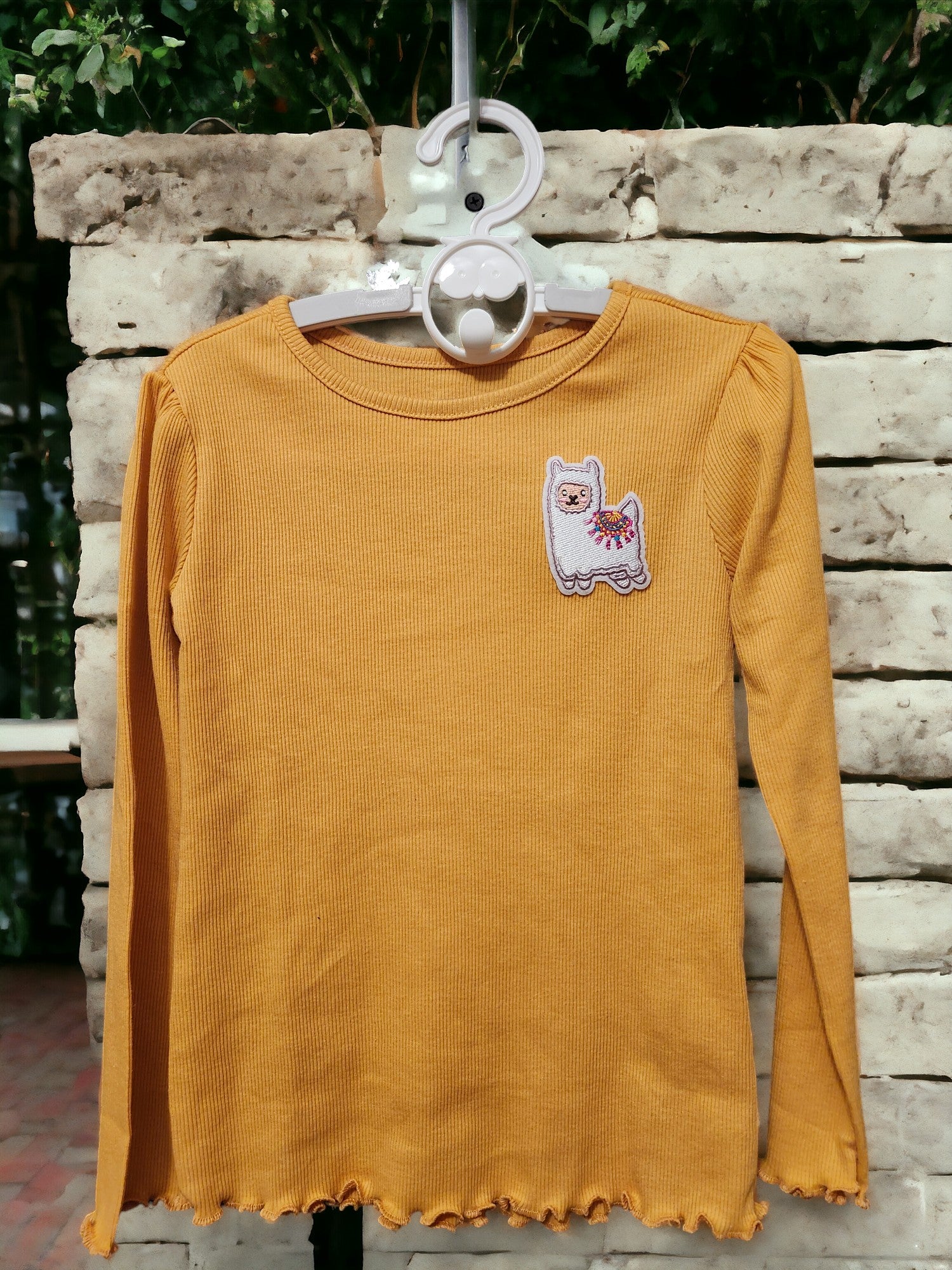 This is a warm and gentle colored long sleeve 5T shirt with cute little ruffles on the ends.