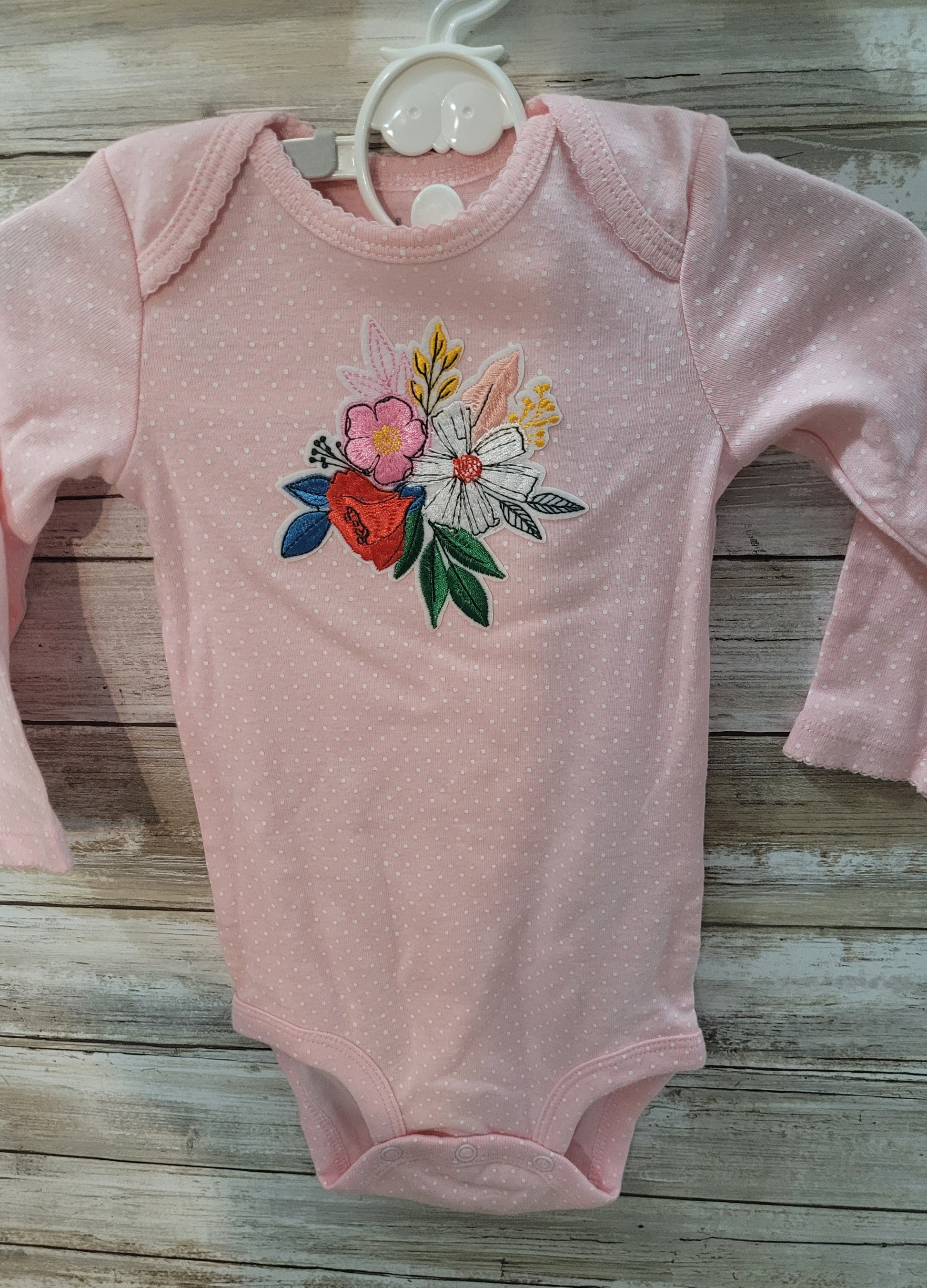 6-12 Month onzie. Not only is it adorable polka dot, but it has gorgeous flowers added