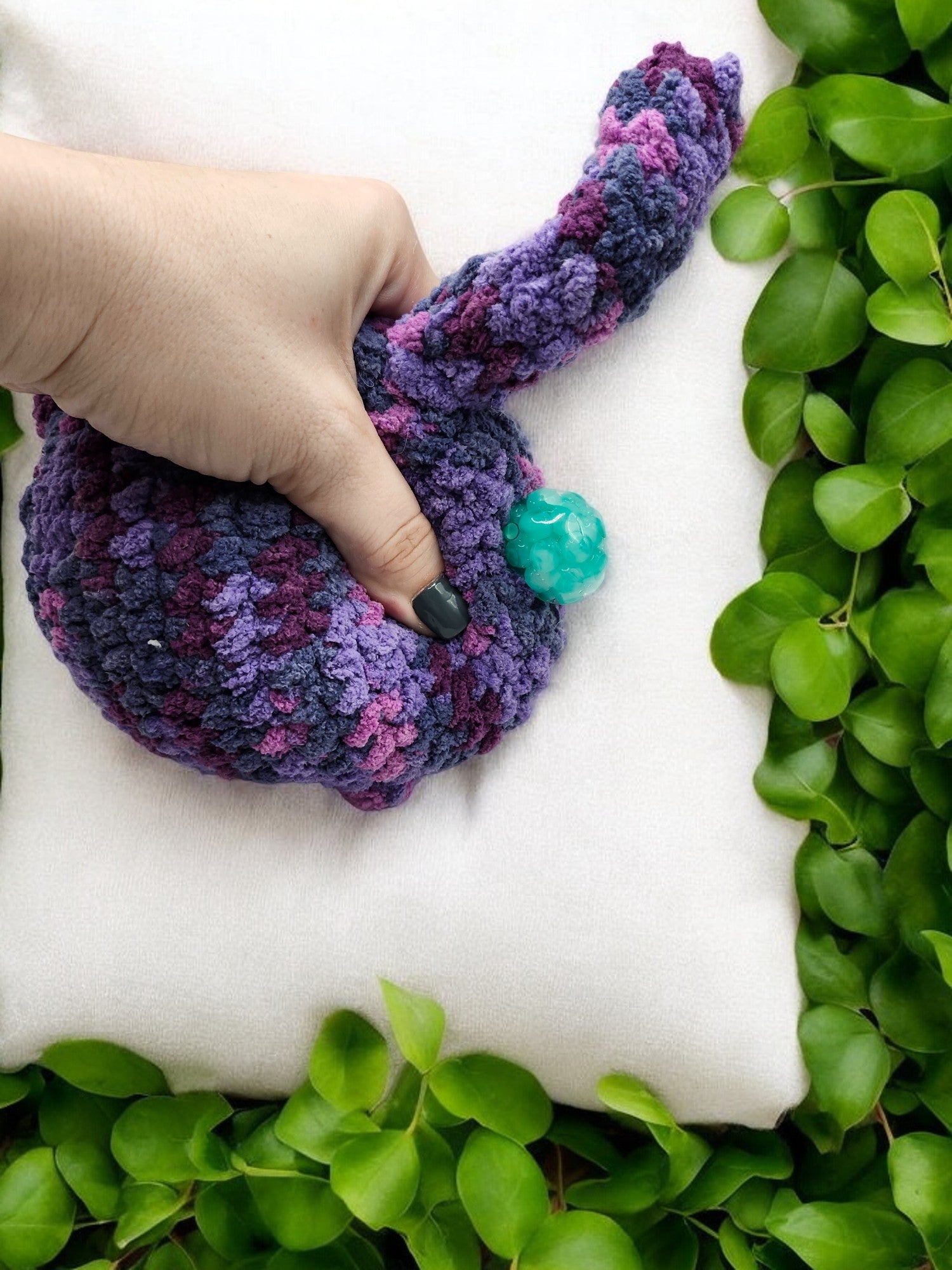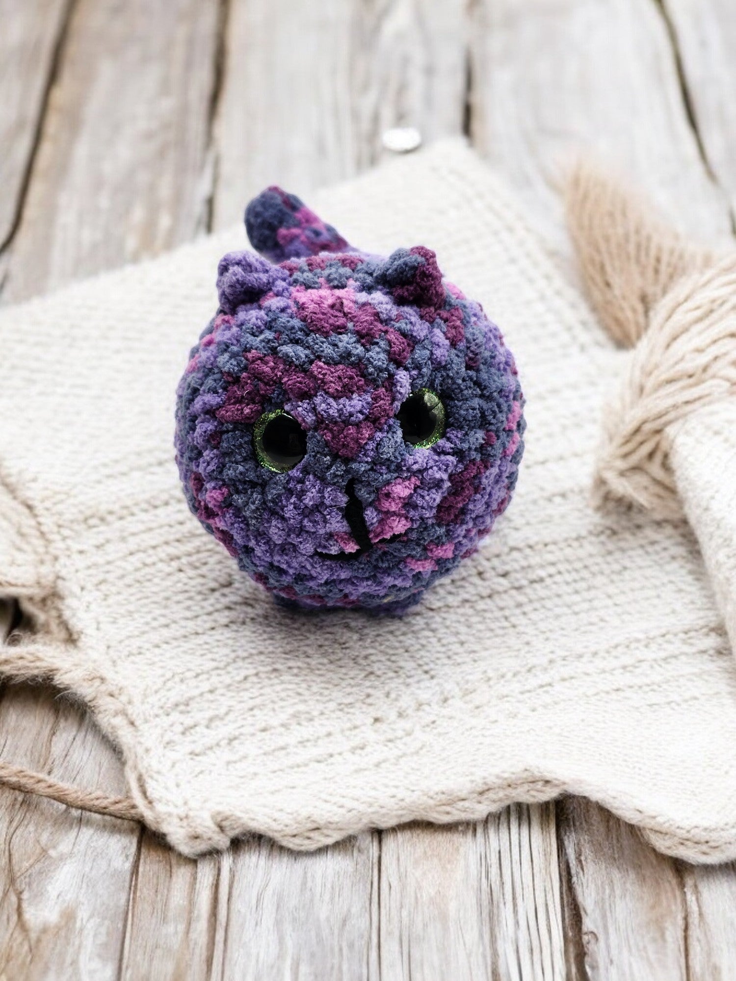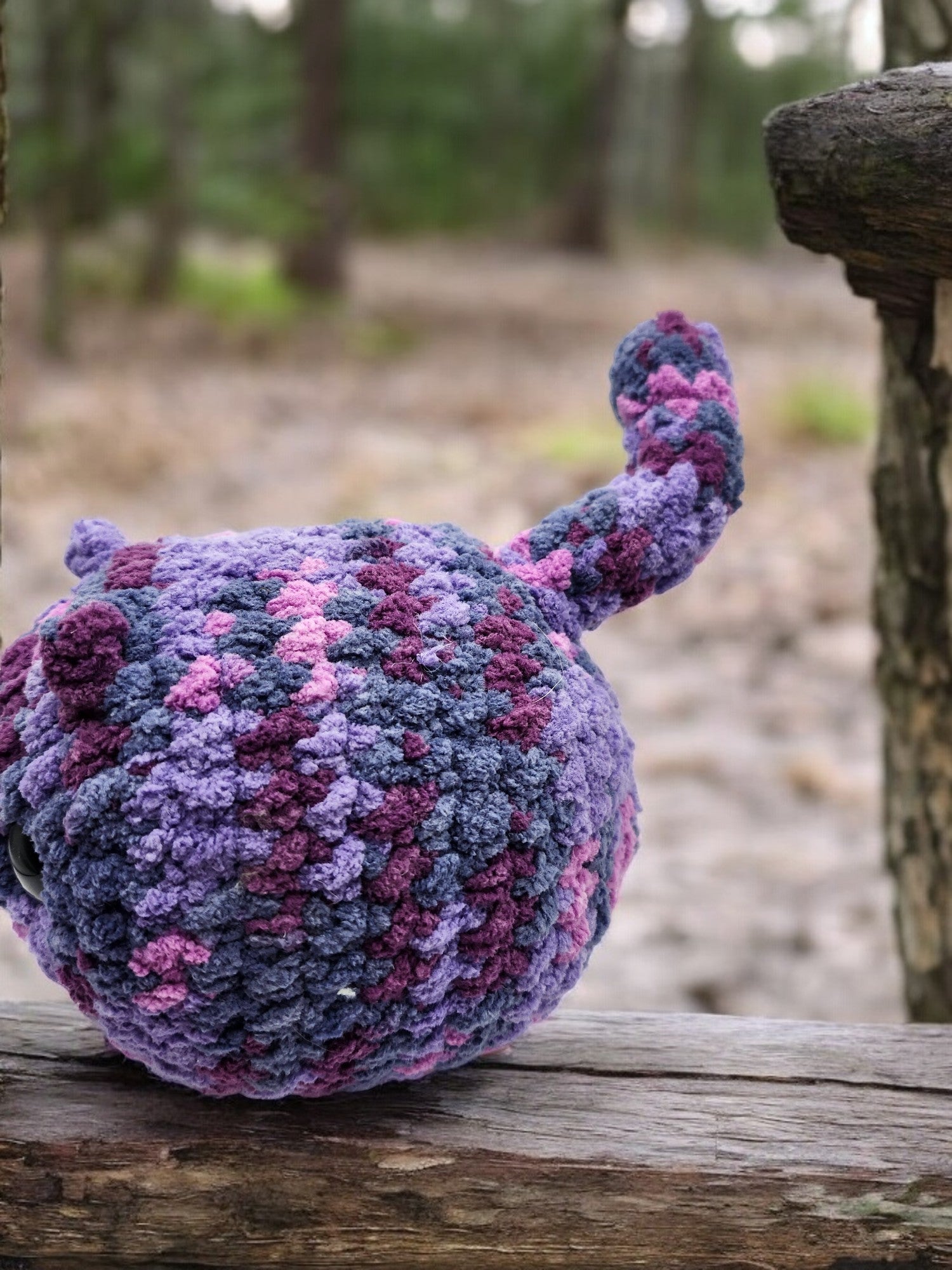 Made with chunk yarn and safety eyes. Pooter has a bendy tail and has a secret...he poops!