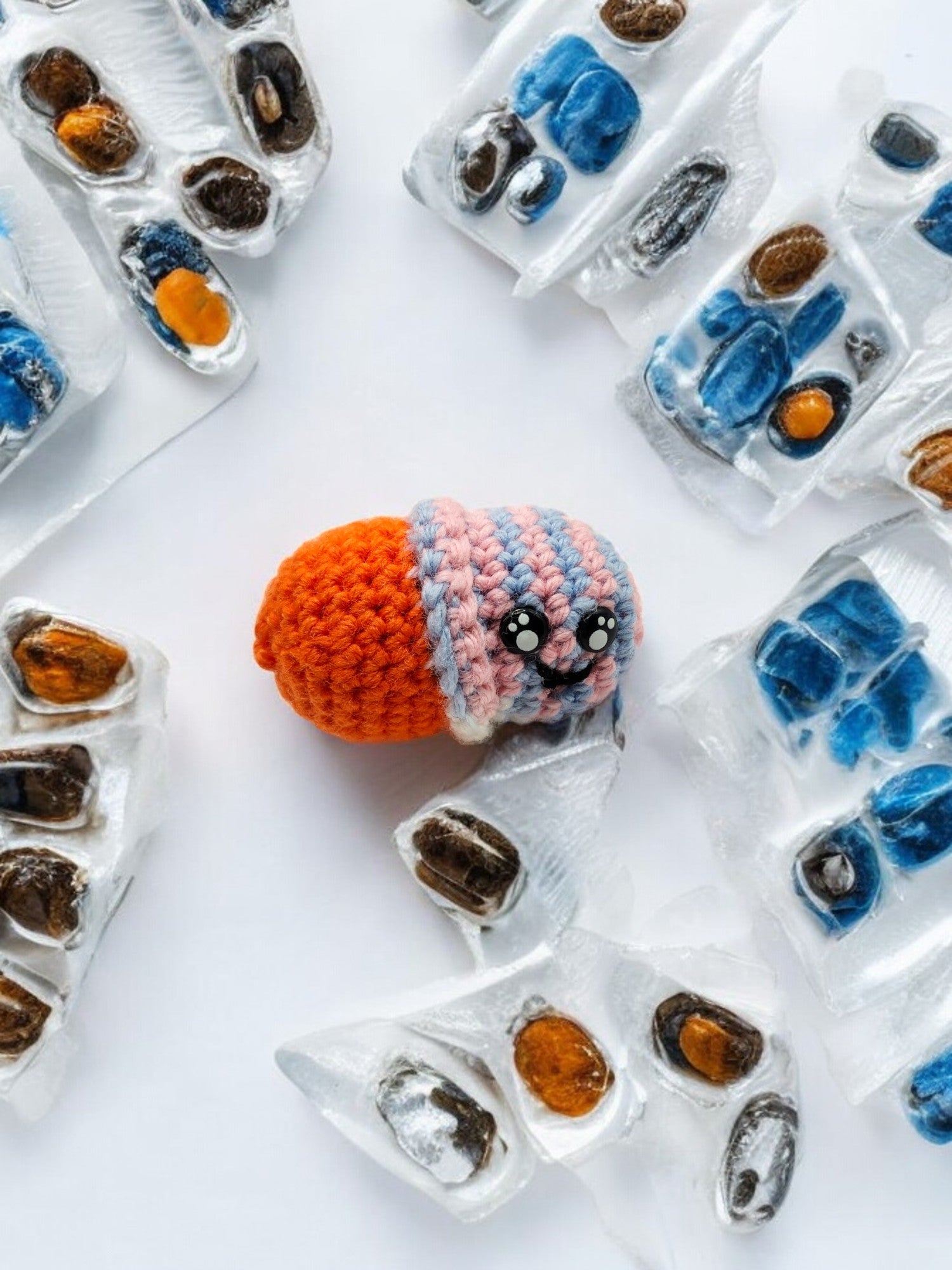 2.5 inches from end to end. Made with Tiny Grim quiet rattle and safety eyes.