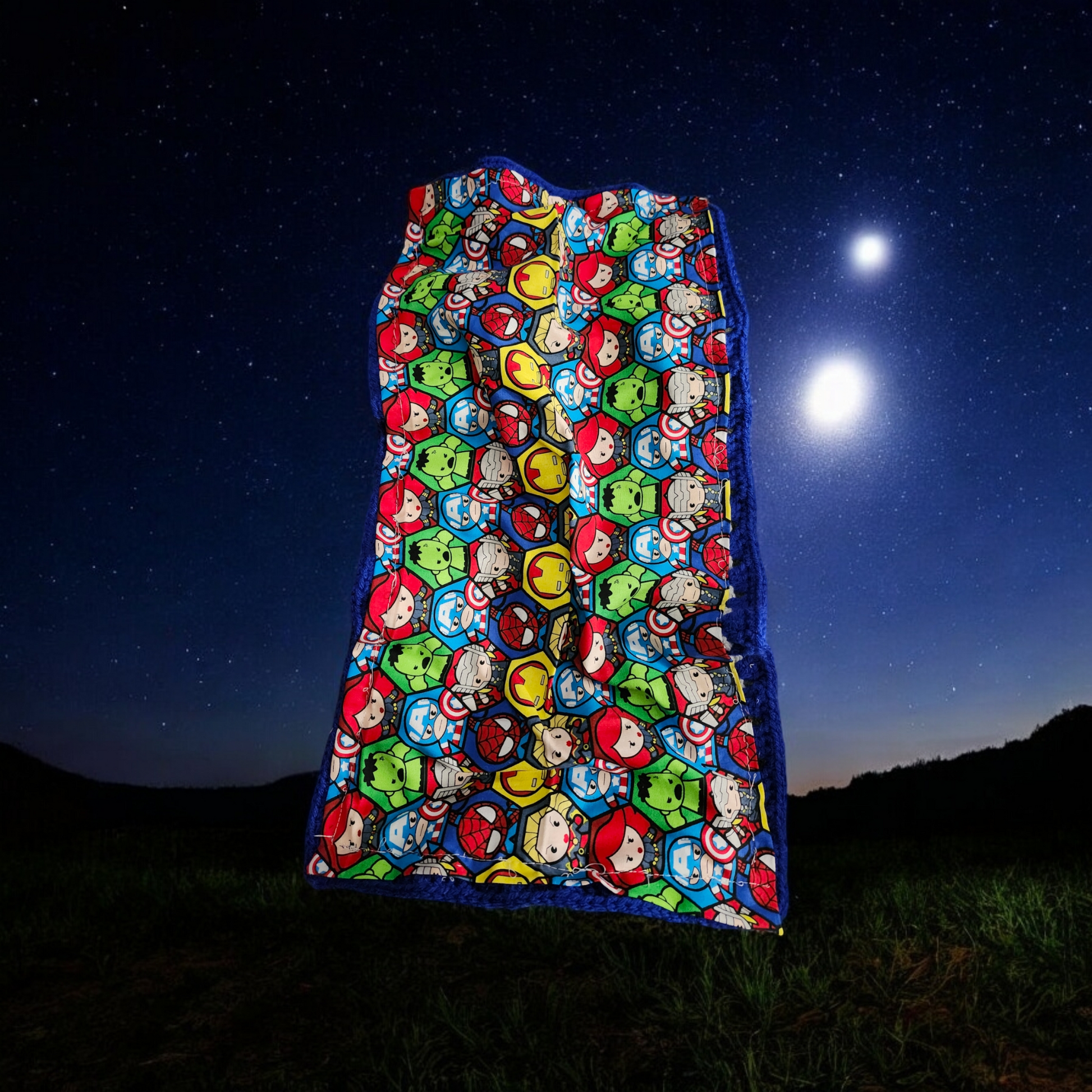 This super hero themed granny square gone crazy has some stretch and give in the middle. Perfect for those little fellas when you are on the go and want to look fashionable. ALSO, sewed with my machine because this is the largest burp cloth, and I and absolutely NOT going to hand stitch this.