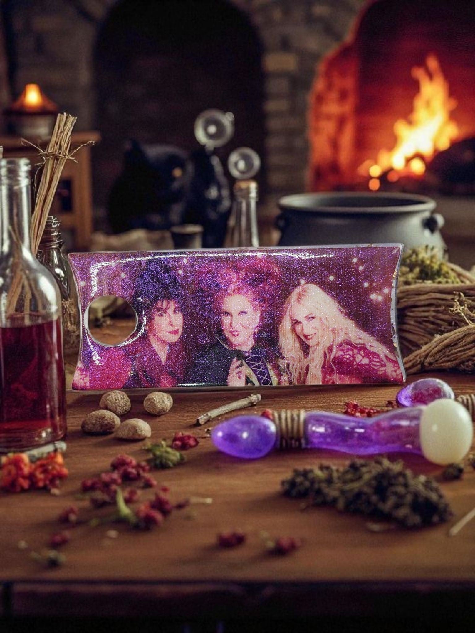 Mermaid has 2 sides- Mermaid and purple witch background.
