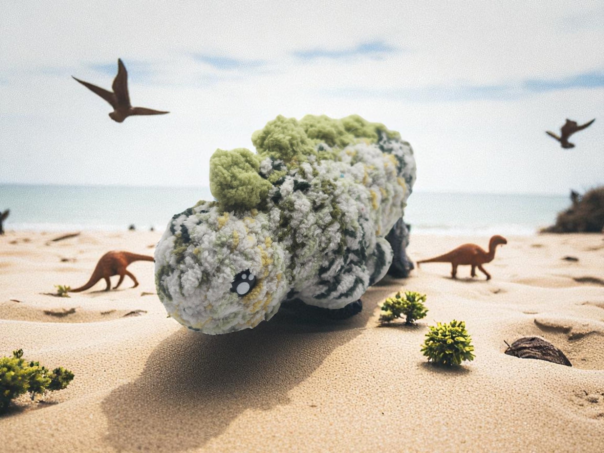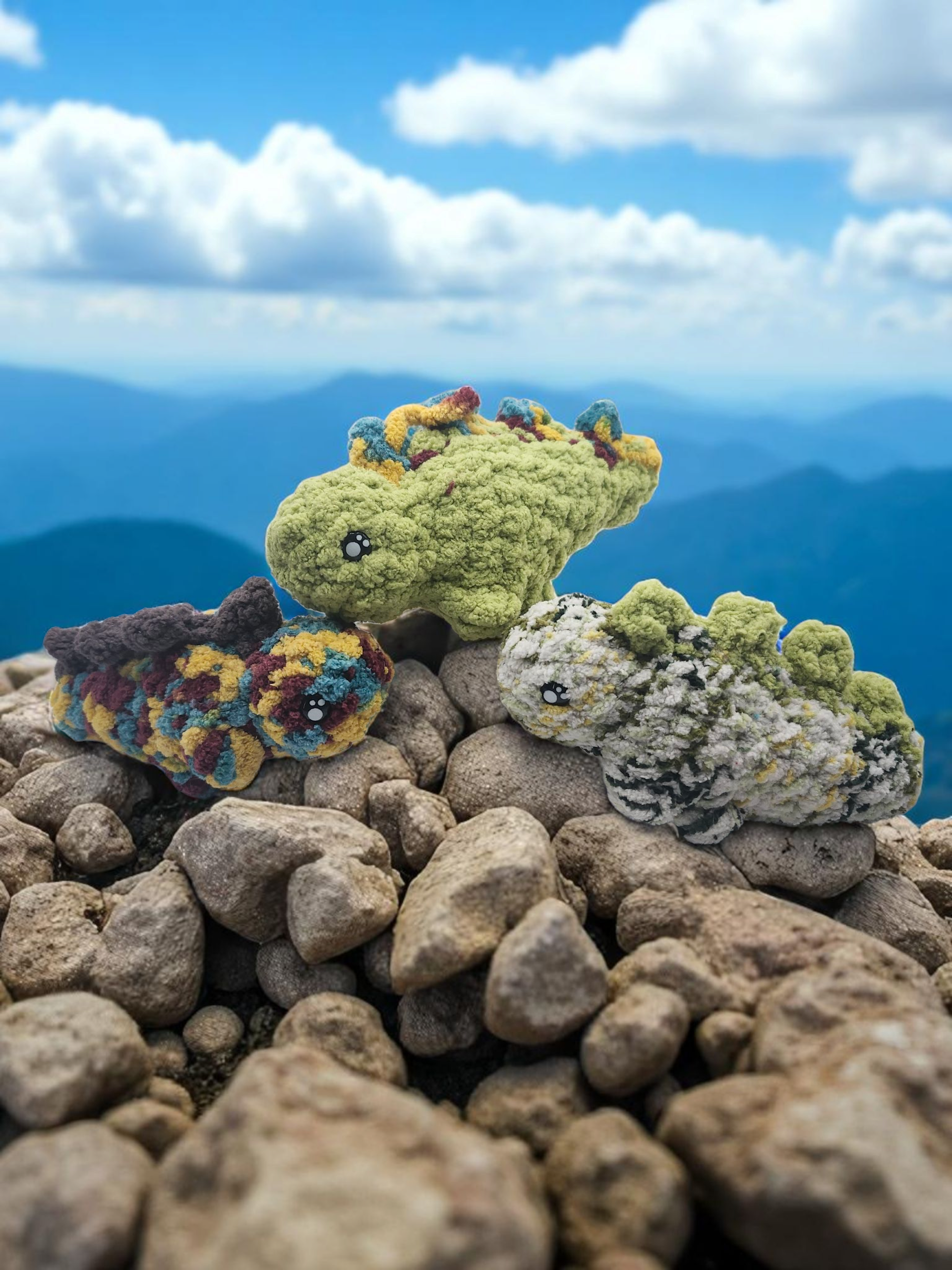 Made with safety eyes. 5 inches from nose to end of tail. Perfect for those little dinosaur lovers!