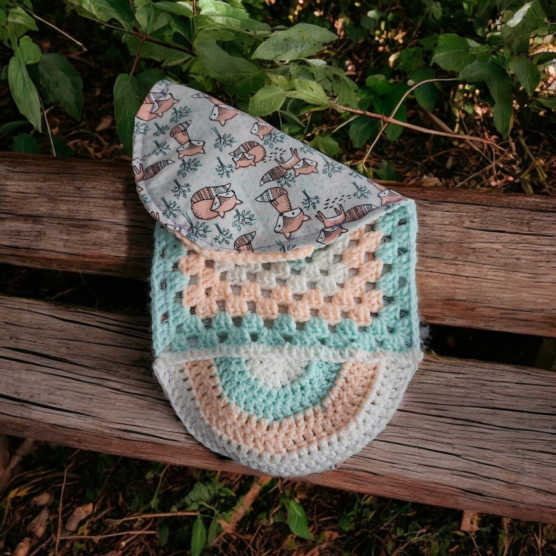 This double sided burp cloth has the cutest foxes! Also hand crocheted yet sewed with my machine because I'm honestly too lazy to hand stitch all of this.