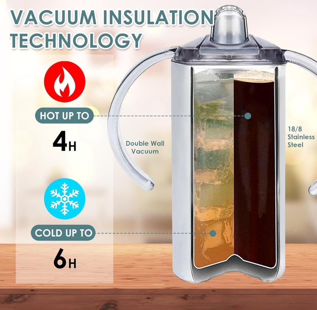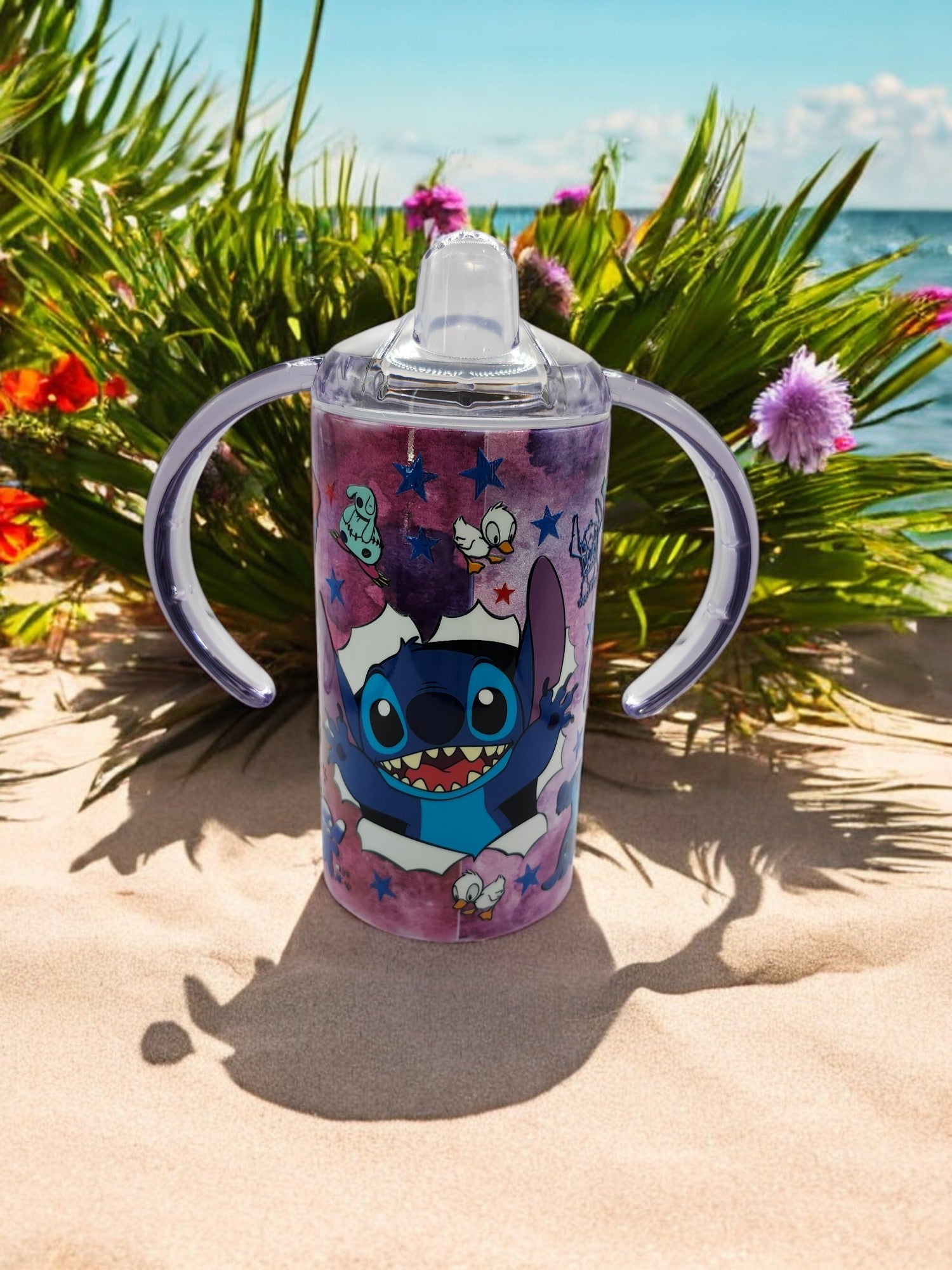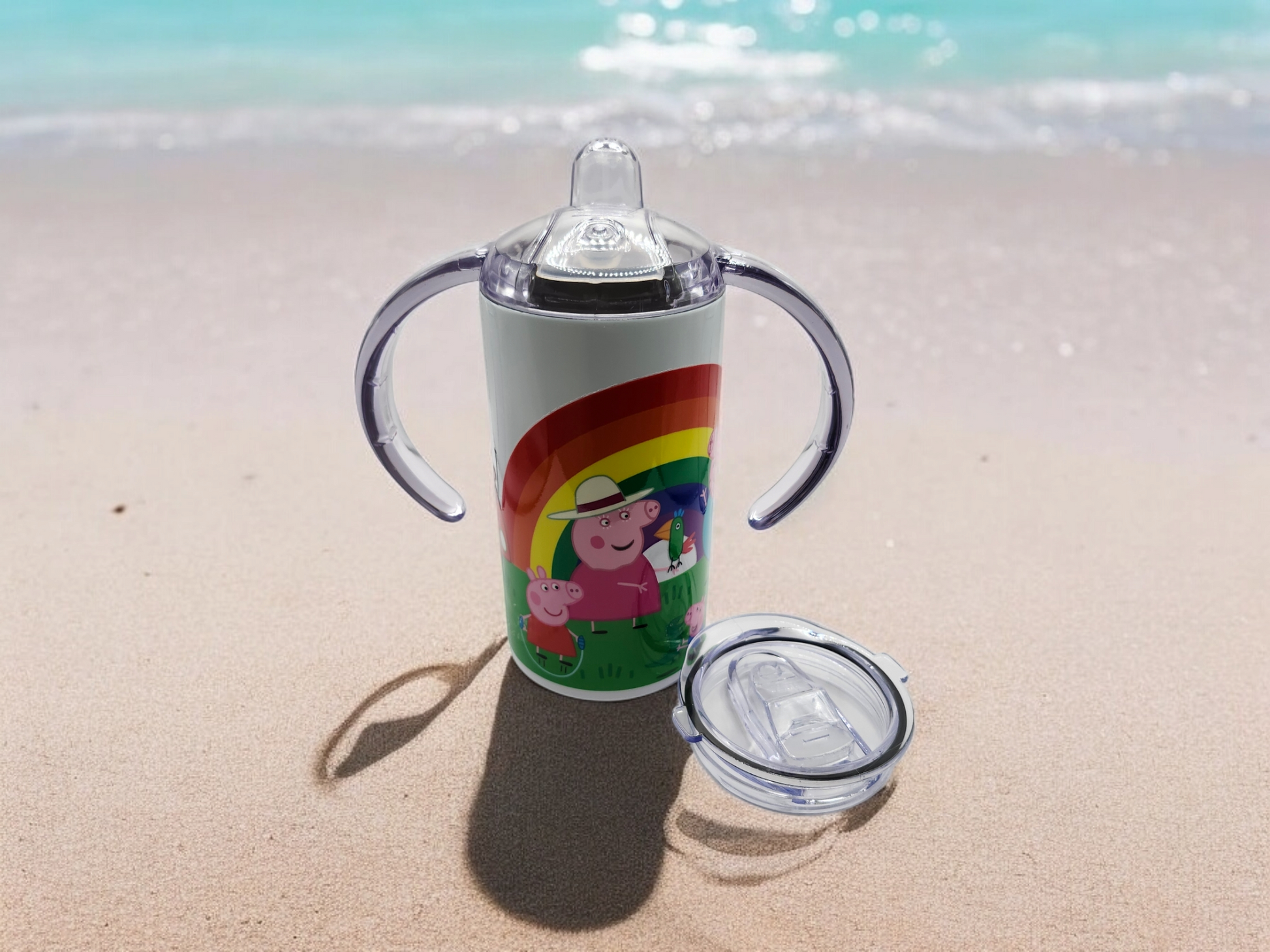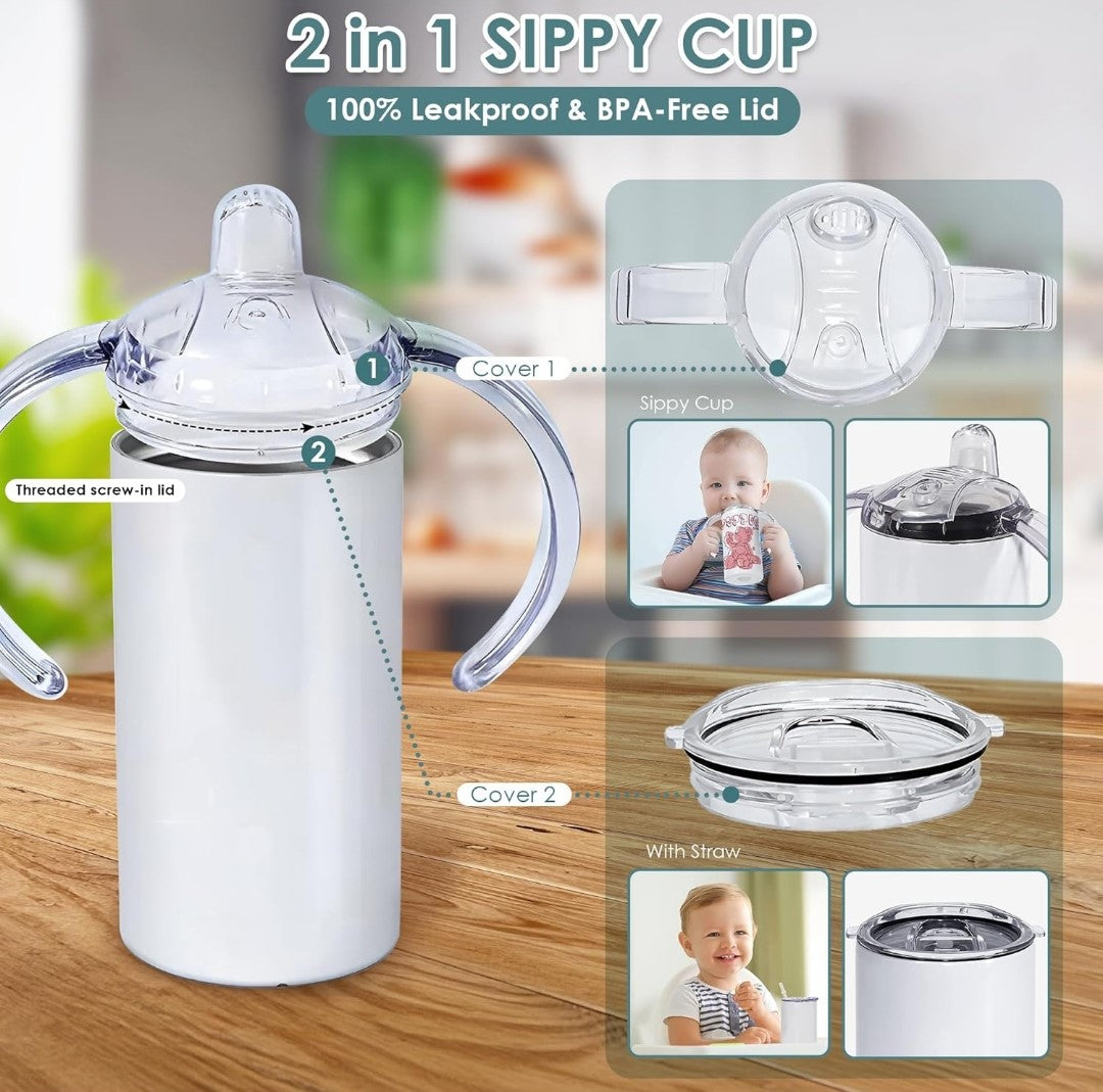 These cup sets are just the cutest!!! They are dishwasher safe by the maker....BUT us moms know that hand washing is ALWAYS BEST FOR DECALS AND LONGEVITY OF THE ITEM! Each set has a unique cup that had a choice of 2 screw tight lids: a toddler sippy cup, and a bigger kid sip cup. Each set also comes with a plastic straw and a straw topper. The cups themselves are metal.