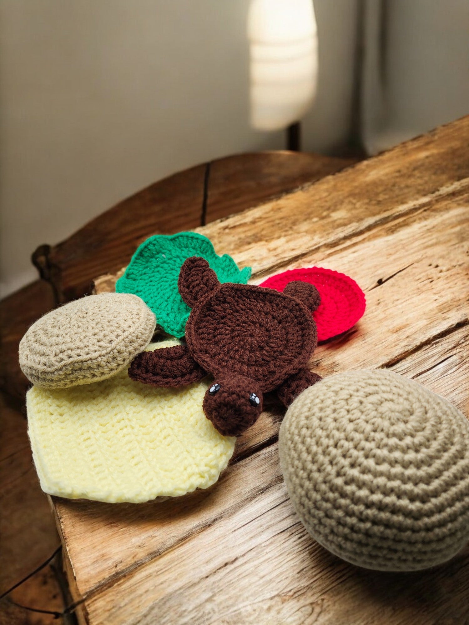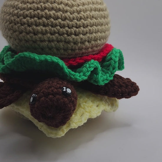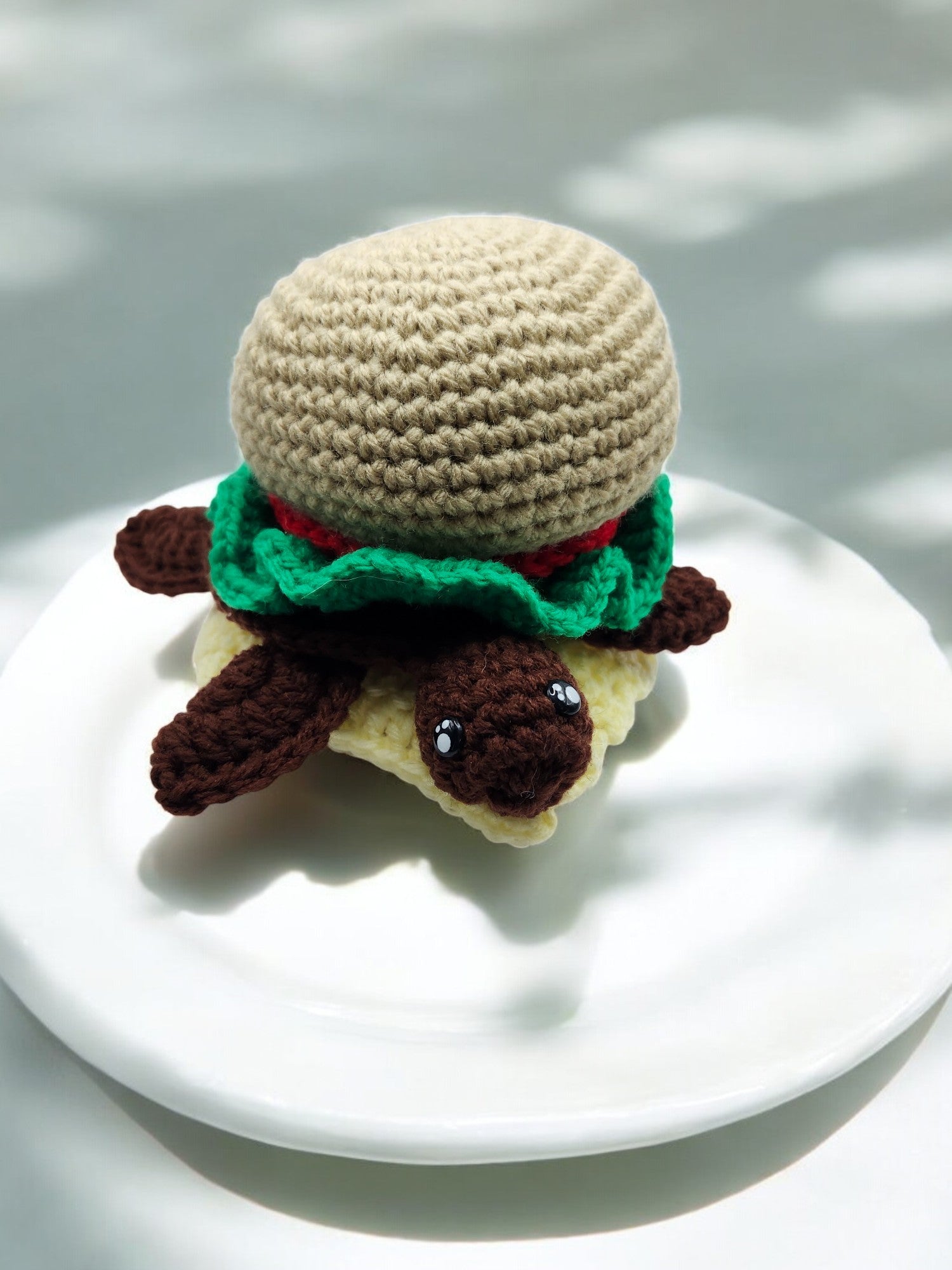 Made with safety eyes and a Tiny Grim quiet rattle in the top bun.